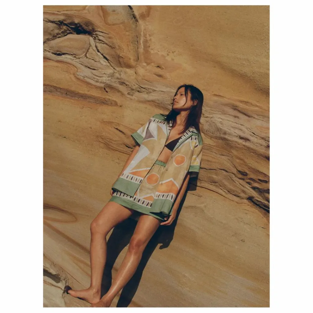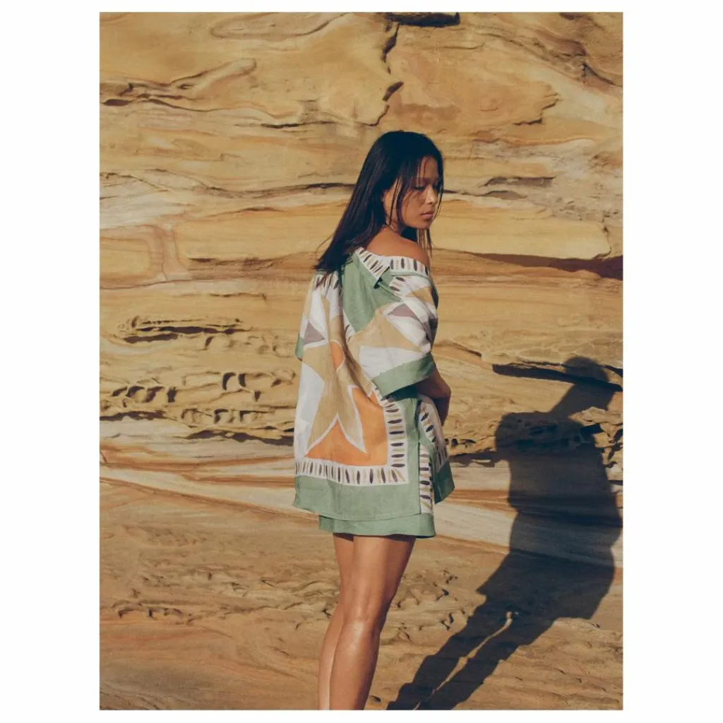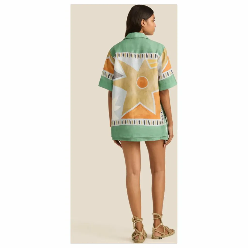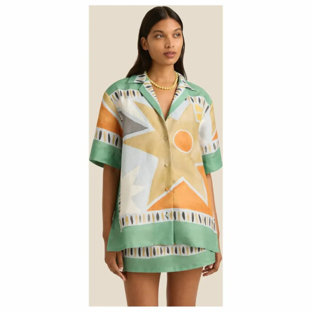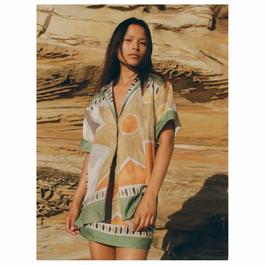 - 100% Lin Coupe décontractée Col campagnard classique Ourlet droit avec fentes latérales Boutons recouverts Le modèle porte une taille 1