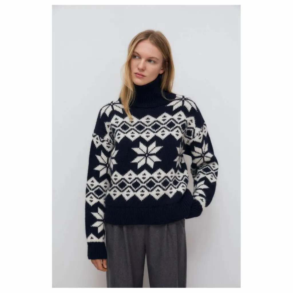 - Pull court à coupe large en luxueux mélange d’alpaga et de laine, doté d’une encolure côtelée et d’un magnifique motif jacquard contrasté.