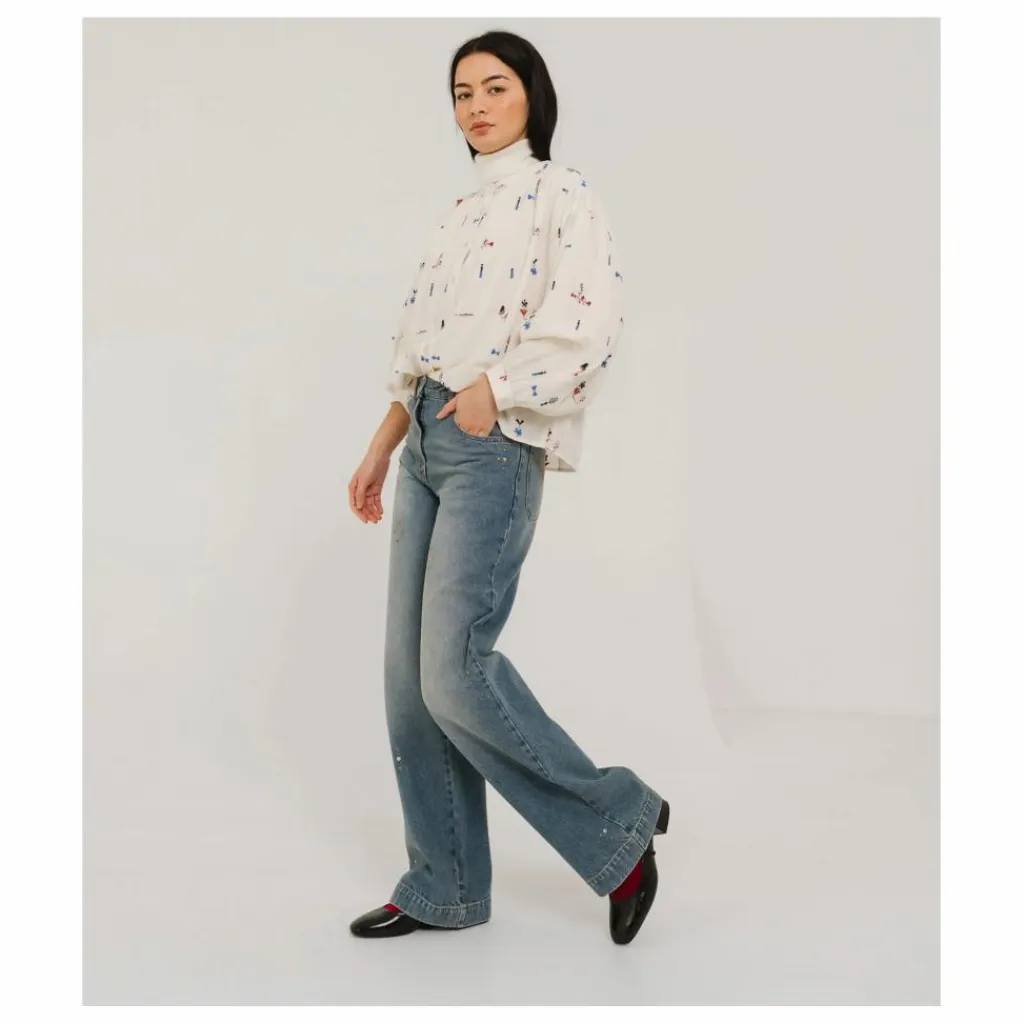 - CANDIDE est une blouse oversize à emmanchures et manches larges. Manches longues à poignets froncés. Col droit. Fermée sur le devant par des boutons. Candide est coupée dans un motif géométrique exclusif, réalisé par technique de tissage Jacquard.