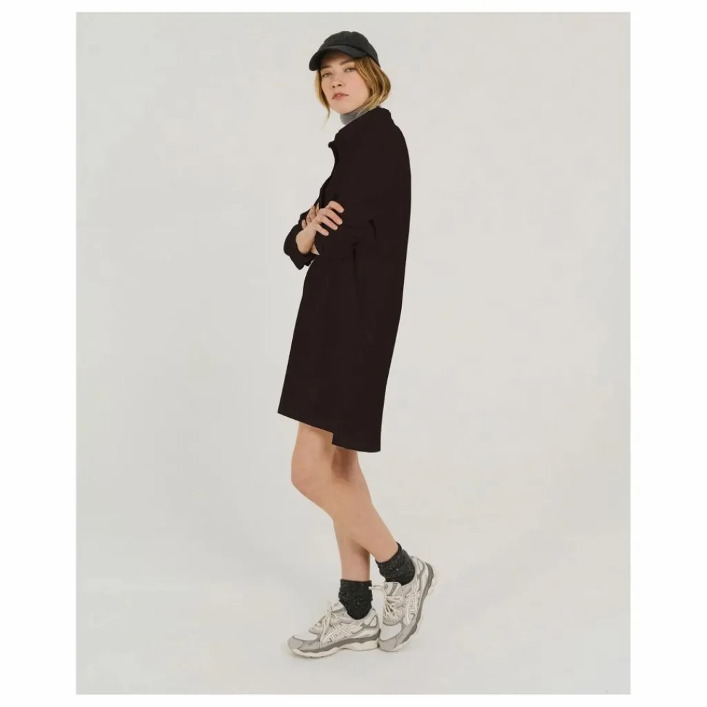 - DJINA est une robe esprit polo, coupe loose, courte et droite. Col avec patte polo. Manches longues avec poignets boutonnés Décalage de longueur entre le dos et le devant. Poches fendues aux côtés. Djina est coupée dans une flanelle de coton grattée unie.