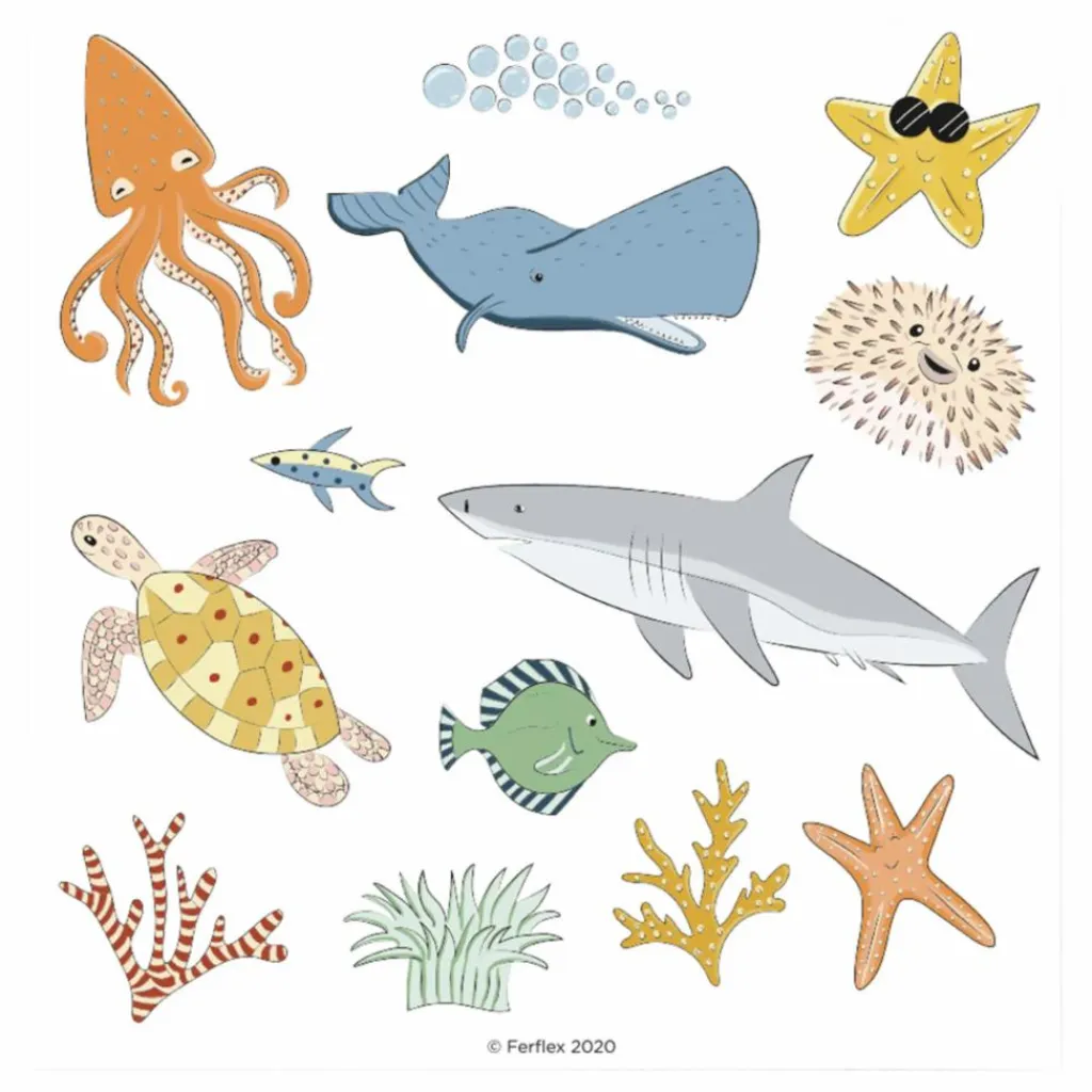 Lancez des discussions entre animaux aquatiques et plongeurs et jouez de petites scénettes. De nombreuses possibilités de jeux avec le lot de 52 magnets sur le thème des fonds marin. Formes aimantées à déplacer à l’infini sur tous supports métalliques : sur un frigo ou sur un tableau magnétique.