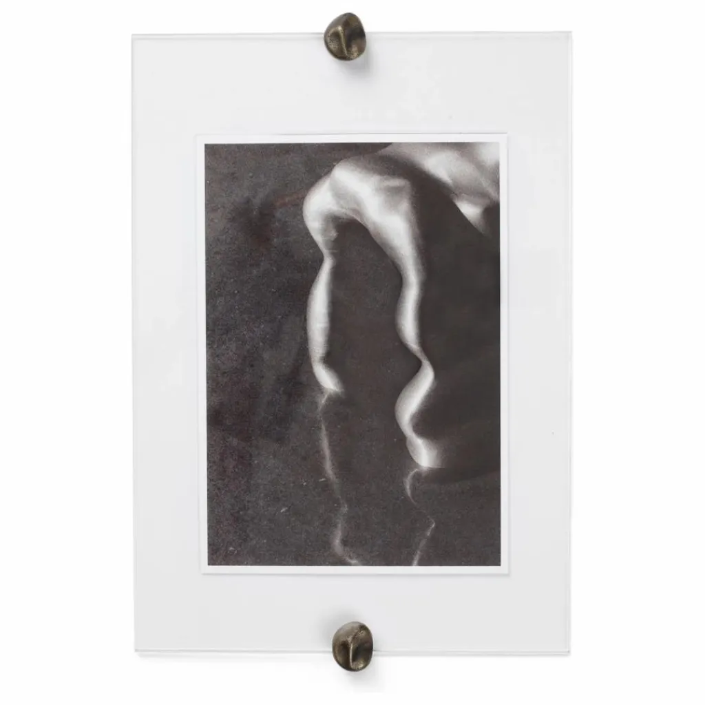 Rehaussez votre espace avec une touche de sophistication et de style personnel en utilisant le cadre photo Gravel. Ce magnifique cadre moderne se compose de deux feuilles d’acrylique, reliées de manière quasi invisible par des supports sculpturaux en laiton moulé ressemblant à de petits morceaux de gravier.