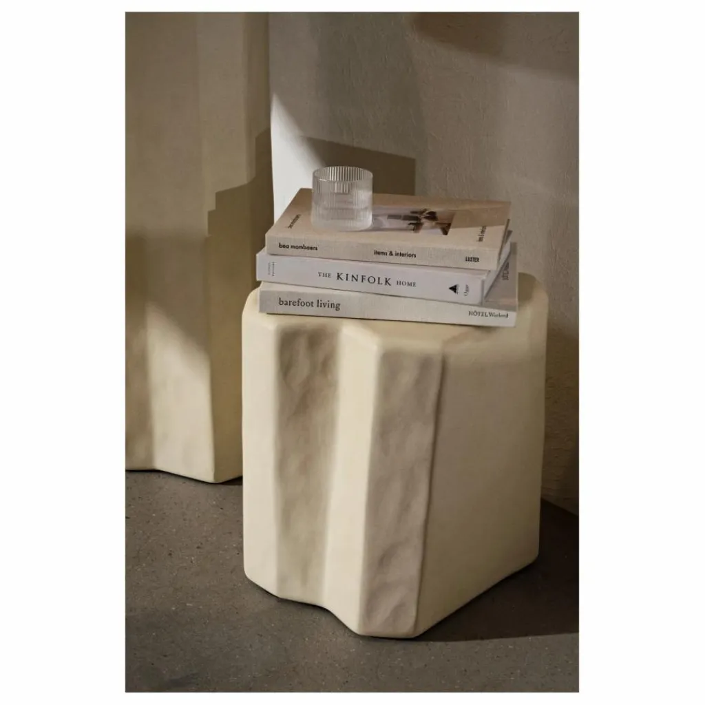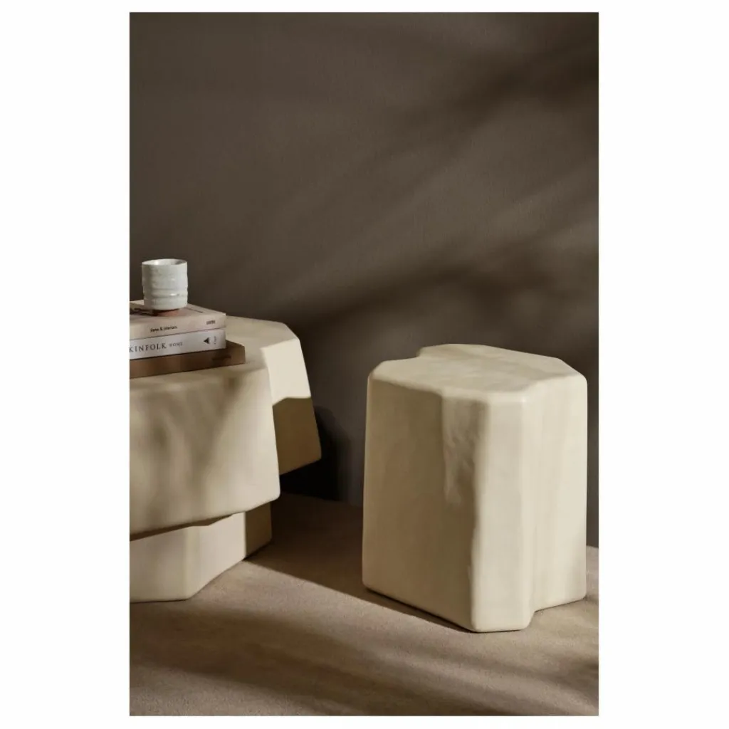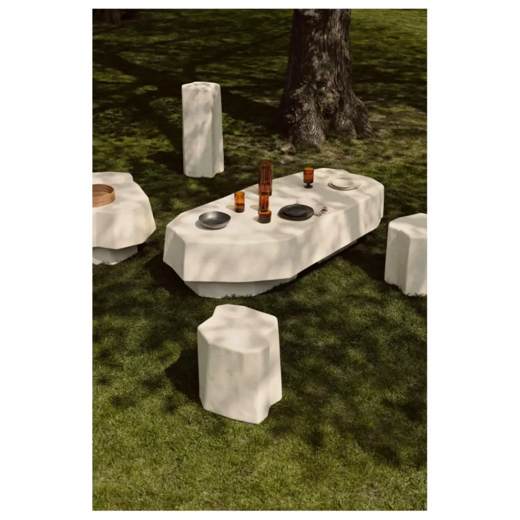 Inspirée par les formations rocheuses volcaniques trouvées sur l’ancienne île de Staffa en Écosse, la collection Staffa comprend une série de meubles audacieux. Rendant hommage à leur homonyme, qui signifie pilier en vieux norrois, chaque pièce est entièrement fabriquée à partir de béton renforcé de fibre de verre, en utilisant un procédé de moulage innovant qui donne à chaque article une forme rugueuse et inégale rappelant des blocs de pierre sculptés.