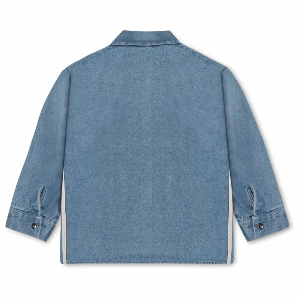 - Chemise en denim à manches longues et col classique. Boutons métalliques sur le devant et poignets larges avec fermeture à boutons. La chemise a une coupe ample et surdimensionnée et une poche de poitrine classique. La chemise est agrémentée d’une bande de coton sportive sur les côtés.