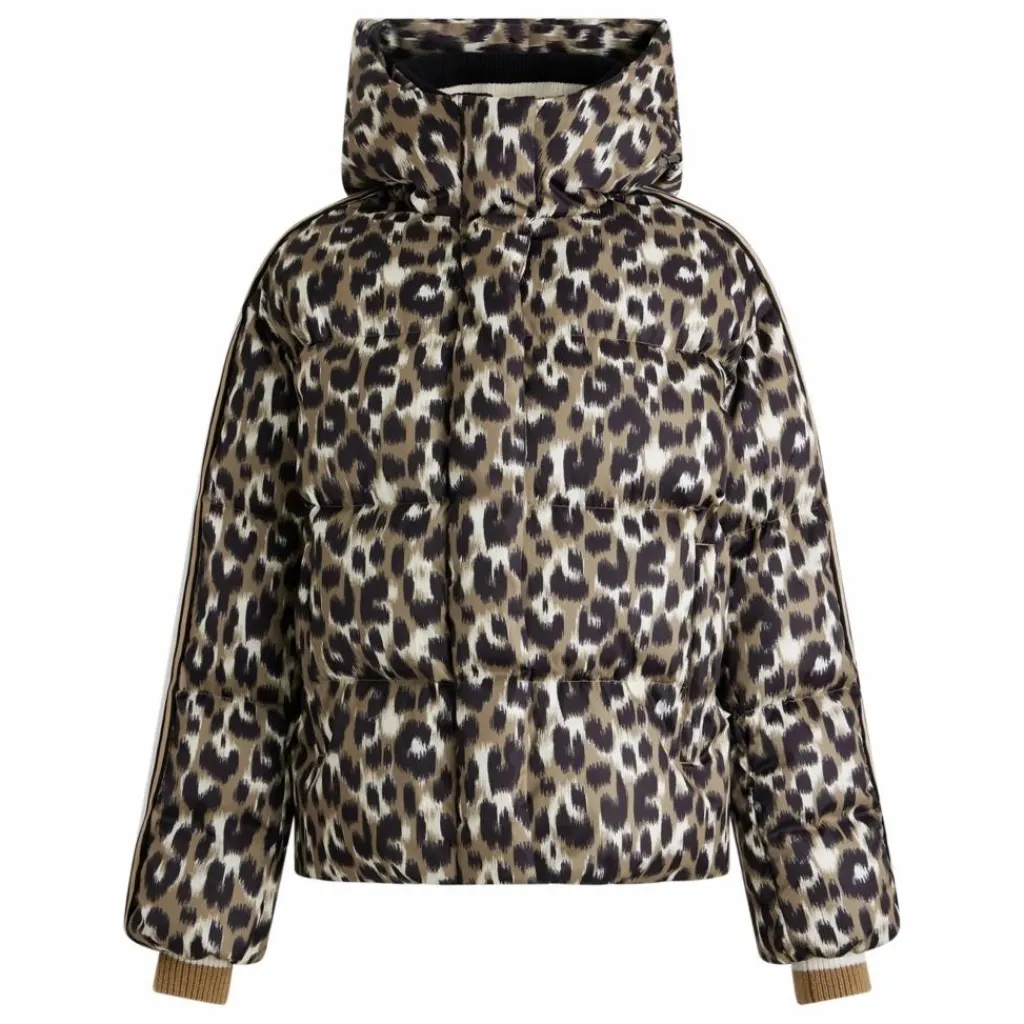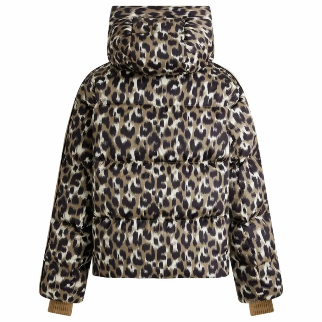 - #### Matière micro sergé déperlante avec effet satiné et membrane approuvée FUSALP imprimée leopard