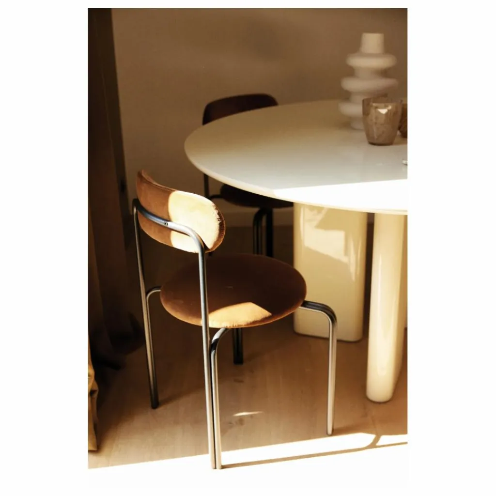 Matériaux nobles, détails sophistiqués et lignes affirmées, la table Gabrielle Paris sublime les espaces et réinvente l’esprit seventies. La laque s’invite pour une esthétique audacieuse, les bords sont biseautés, et les formes sont contrastées.
