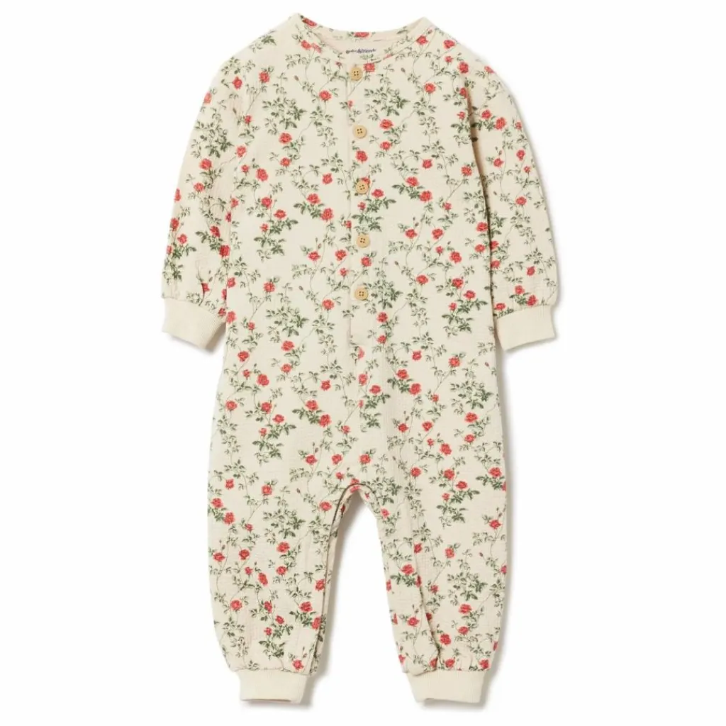 - Combinaison en jersey doux et structuré, légèrement extensible pour un confort tout au long de la journée, fabriquée en coton biologique. La grenouillère est dotée de poignets côtelés aux extrémités des manches et des jambes, d’une fermeture à boutons sur le devant et de boutons-pression à l’entrejambe pour faciliter l’habillage et le changement de couche.