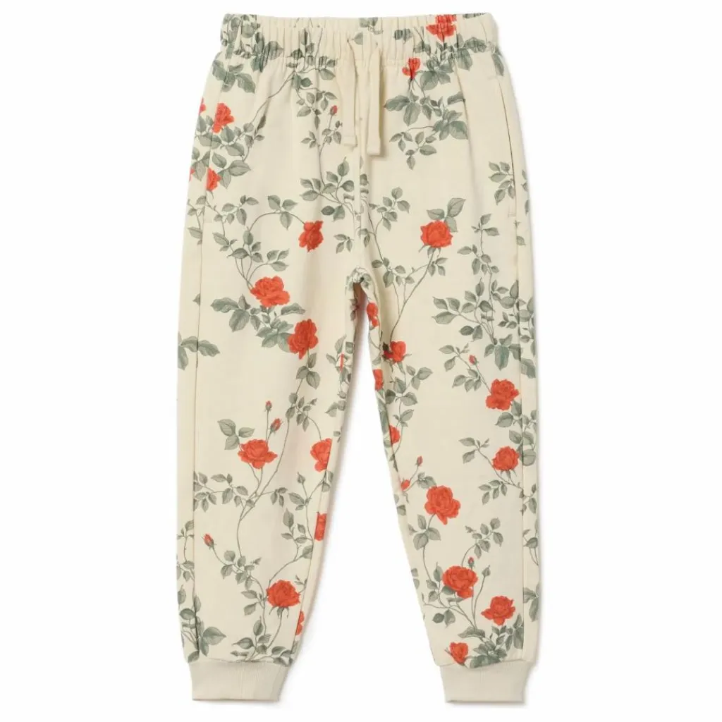 - Pantalon de survêtement doux en coton biologique. Le pantalon de survêtement est doté d’un cordon de serrage à la taille et de poches latérales pour les tailles enfant.