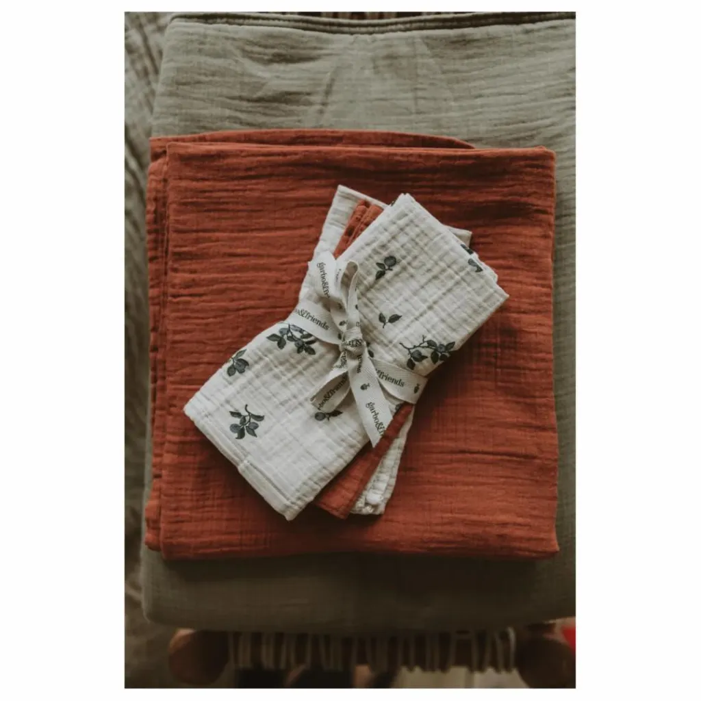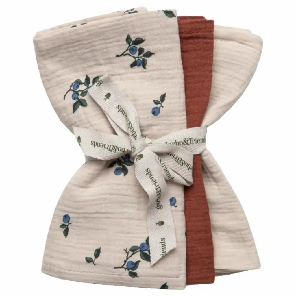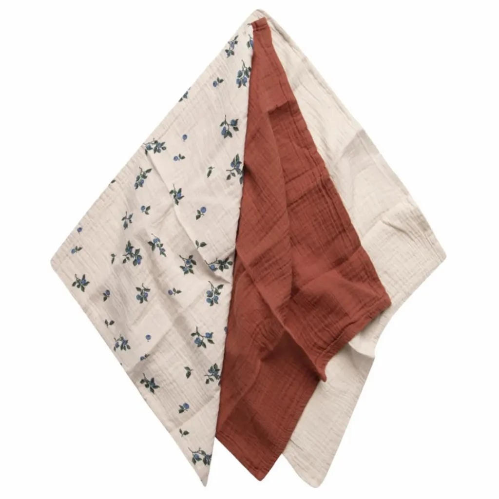 Ce set de trois langes aux imprimés floraux délicats a été fabriqué en mousseline de coton légère et aérée qui devient plus douce à chaque lavage.