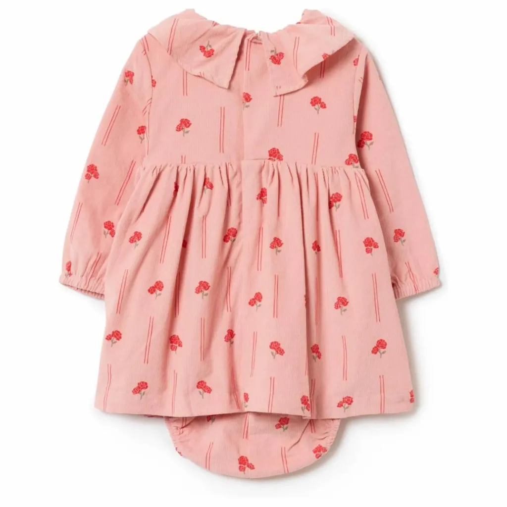 - Barboteuse en micro velours côtelé avec jupe superposée pour une allure de robe. La grenouillère a des manches longues et des ouvertures de jambe élastiques pour le confort et des fermetures à boutons-pression à l’entrejambe pour un changement de couche rapide. Parfaite pour un look quotidien décontracté ou pour les occasions spéciales.