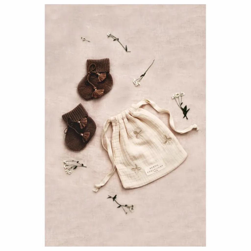 Gentil Coquelicot Chaussons en tricot et pochon brodé | Chocolat Clearance