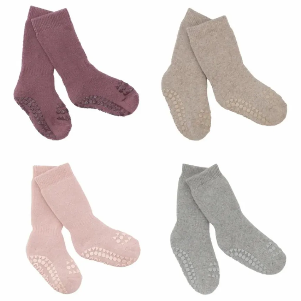- Boîte de 4 chaussettes antidérapantes en coton éponge biologique. Les chaussettes antidérapantes sont dotées de semelles antidérapantes spécialement conçues et de coussinets en caoutchouc sur les orteils, ce qui les rend parfaites pour les bébés et les jeunes enfants qui aiment ramper, marcher et courir sans glisser. Ces chaussettes favorisent la motricité, l’équilibre et la confiance en soi de votre enfant. Fabriquées en coton épais, biologique et respirant, elles peuvent remplacer les pantoufles. Les chaussons à semelle dure peuvent entraver le développement des petits pieds. Nous recommandons donc d’utiliser des chaussettes antidérapantes pour permettre aux petits pieds de se développer et de grandir correctement.