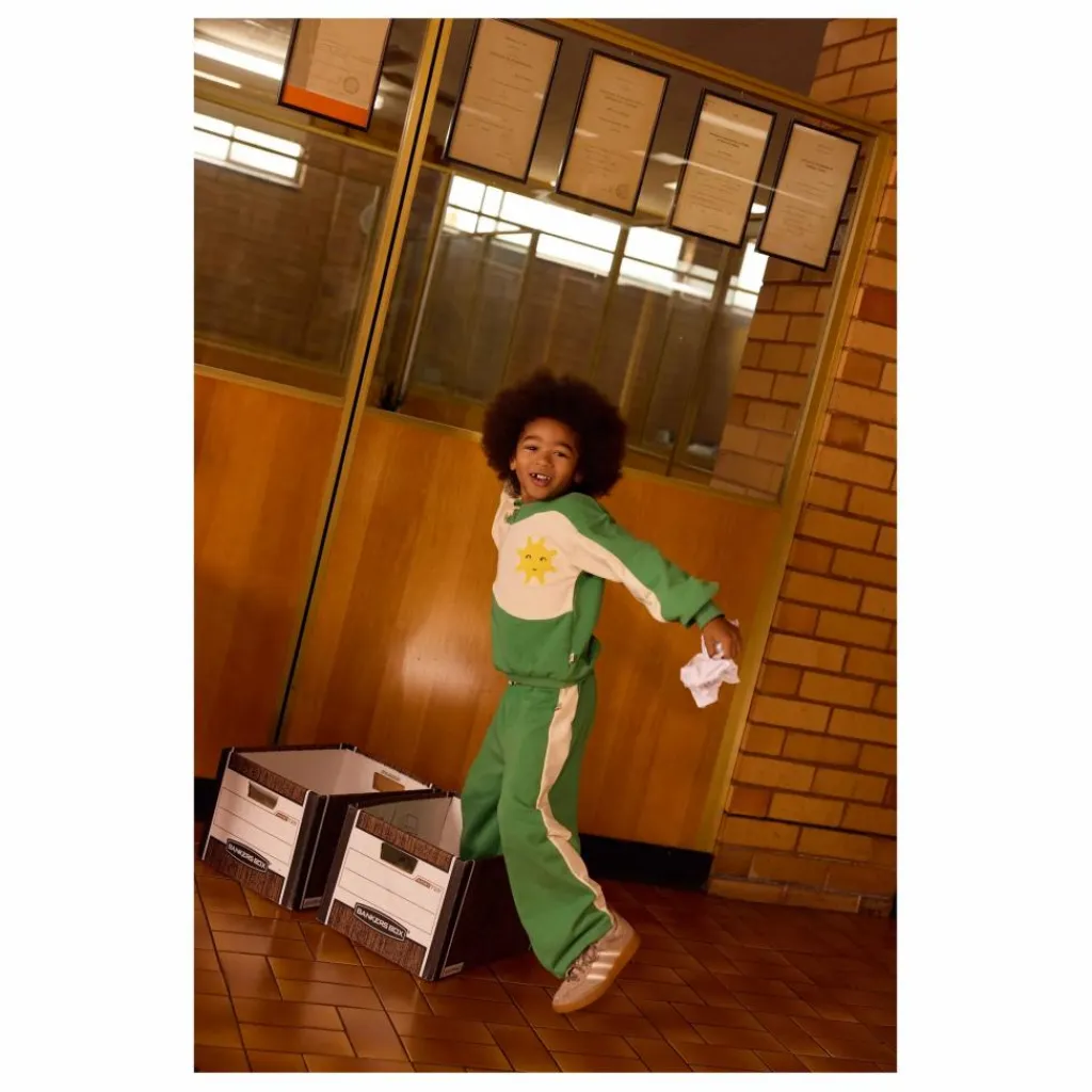 - Vert et vanille Tissu éponge française Caractéristiques passepoilées Soleil brodé Conçu en Australie
