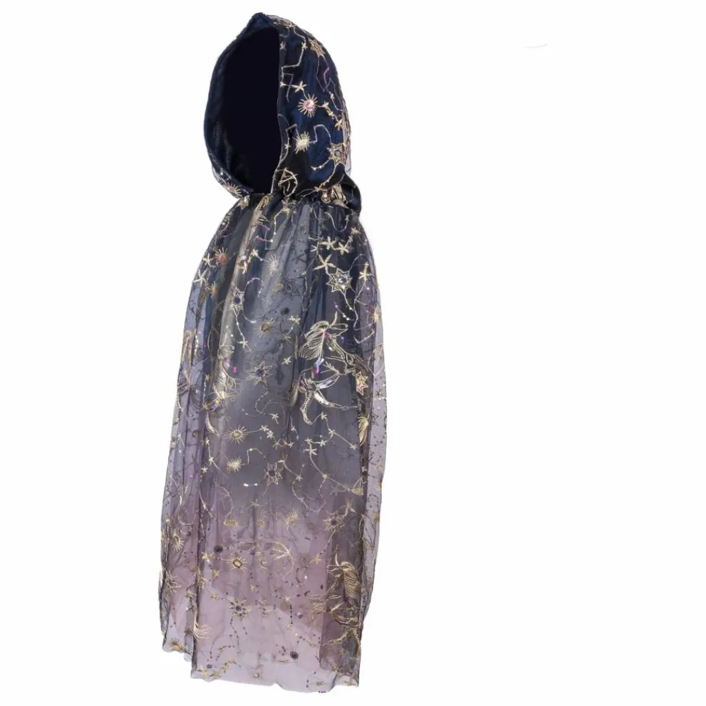 - Entrez dans la lumière des étoiles avec notre cape Twilight Enchantress – un accessoire céleste et féerique pour les petites rêveuses en quête de magie. Cette cape fluide est confectionnée dans un tissu violet foncé et transparent qui scintille comme le ciel nocturne. Des étoiles brodées et des constellations étincelantes ornent sa surface, créant un look enchanteur.