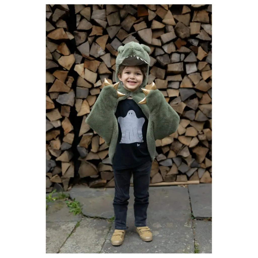 Parfaite pour les câlins et les promenades, la cape est dotée d’une fermeture velcro au niveau du cou pour la porter facilement et de « pattes de dinosaure » pour garder les petites mains au chaud pendant qu’ils jouent, rugissent et règnent sur leur royaume jurassique.