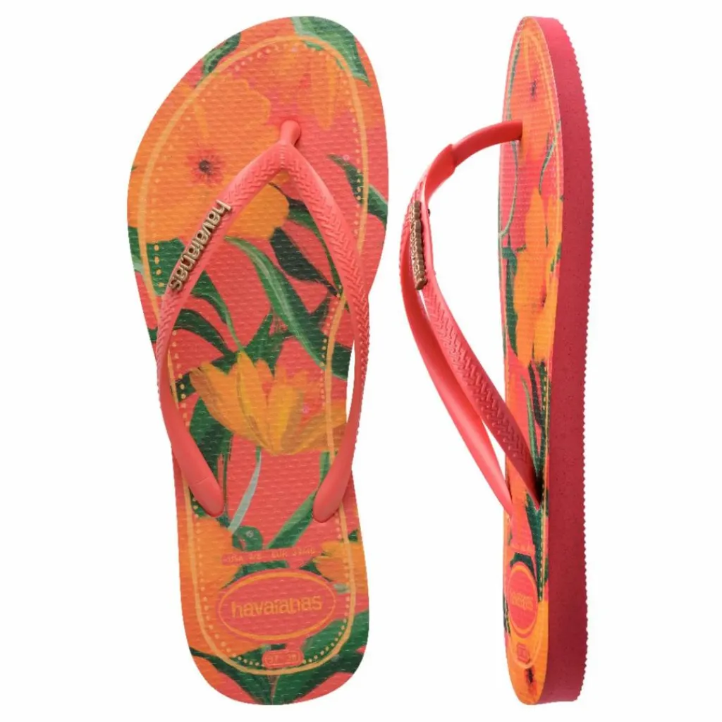 - La tong Havaianas Slim Tropical pour femme a le design Slim que vous connaissez déjà, avec des lanières et des semelles plus fines, avec de magnifiques imprimés tropicaux brésiliens. La sandale a également le logo métallique Havaianas bien en évidence sur les lanières. Choisissez celle qui vous convient le mieux maintenant.