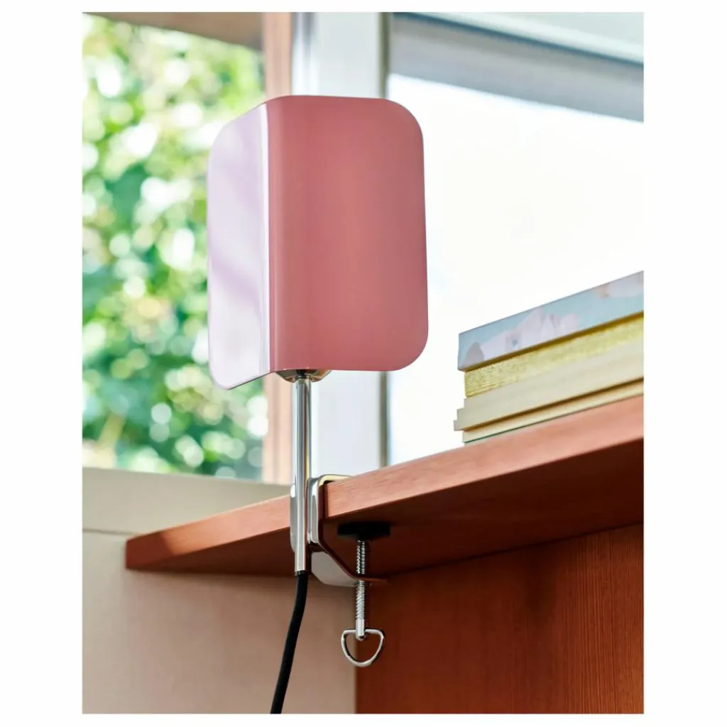 Cette série de lampes s’inspire de la fameuse Banker’s Light. Le designer leur donne ici une touche contemporaine avec des abat-jour en forme de toits pointus et une base chromée minimaliste. Le clip réglable permet de fixer la lampe sur une grande variété de surfaces verticales et horizontales et l’abat-jour, qui peut pivoter à 360°, permet d’orienter la lumière en fonction de vos besoins.