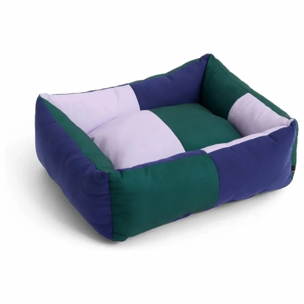 Fruit d’une collaboration entre Mette Hay et son amie Barbara Maj Husted Werner, fondatrice de Holly Golightly, une ancienne boutique de mode et d’intérieur, HAY Dogs invite les propriétaires de chiens et leurs animaux de compagnie à entrer dans l’univers HAY grâce à des accessoires fonctionnels et colorés. Le lit pour chien, au design ludique et coloré, est fabriqué en polyester recyclé résistant et comporte un coussin lavable et amovible rempli de polyester recyclé. Le lit est disponible en trois tailles et dans différents motifs.