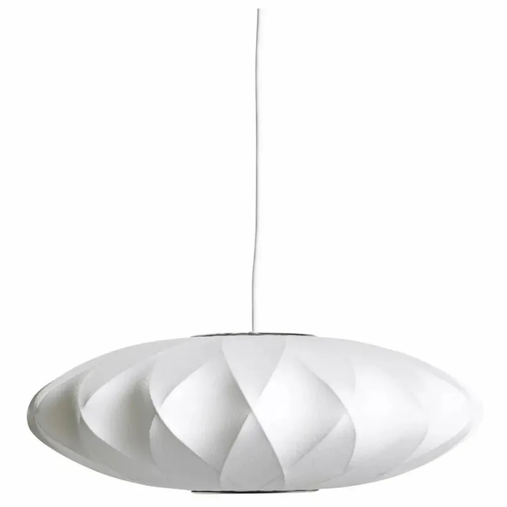 Inspiré de suspensions suédoises recouvertes de soie, Georges Nelson a conçu la série des « Bubble Lamp » en 1952. Le modèle « Crisscross Pendant » projette une lumière douce et présente également un joli motif entrecroisé.