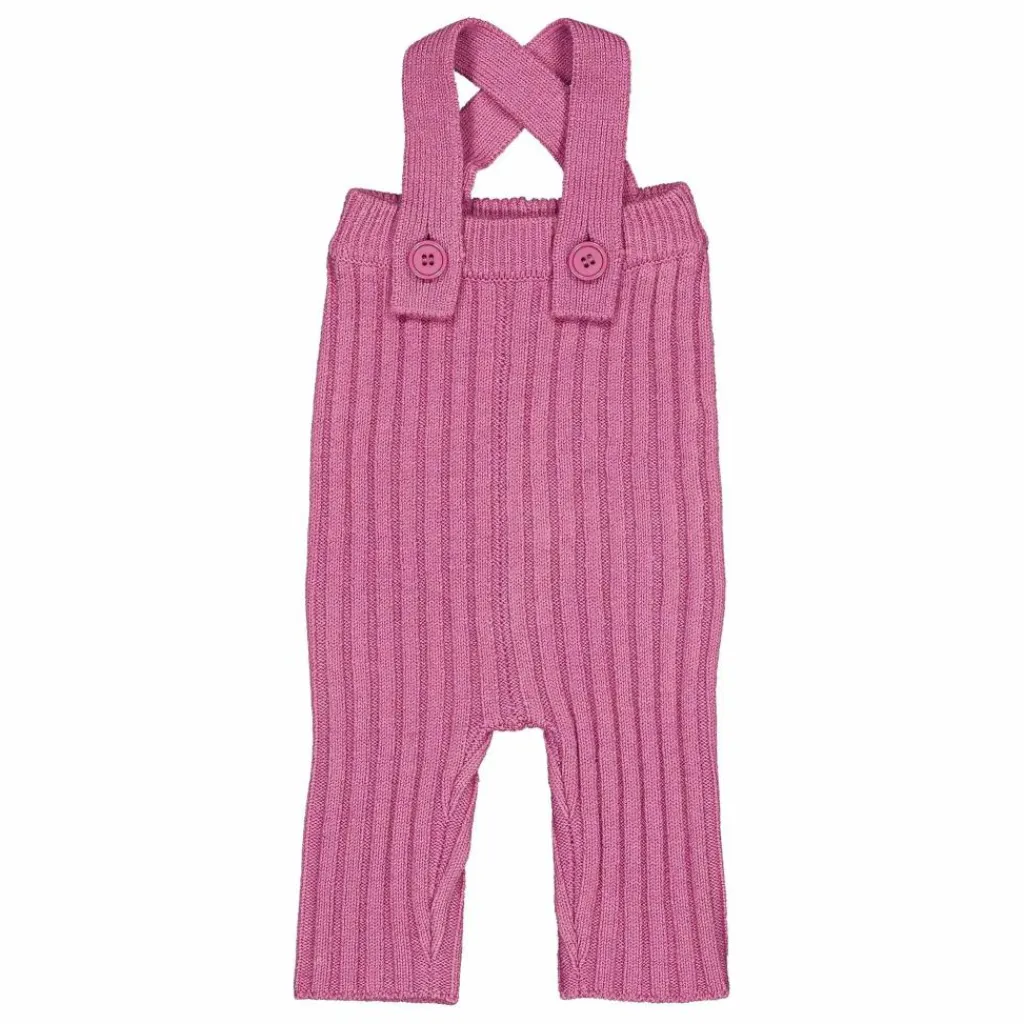 - Pantalon de bébé en tricot à taille haute. Bretelles en tricot détachables sur le devant avec boutons.