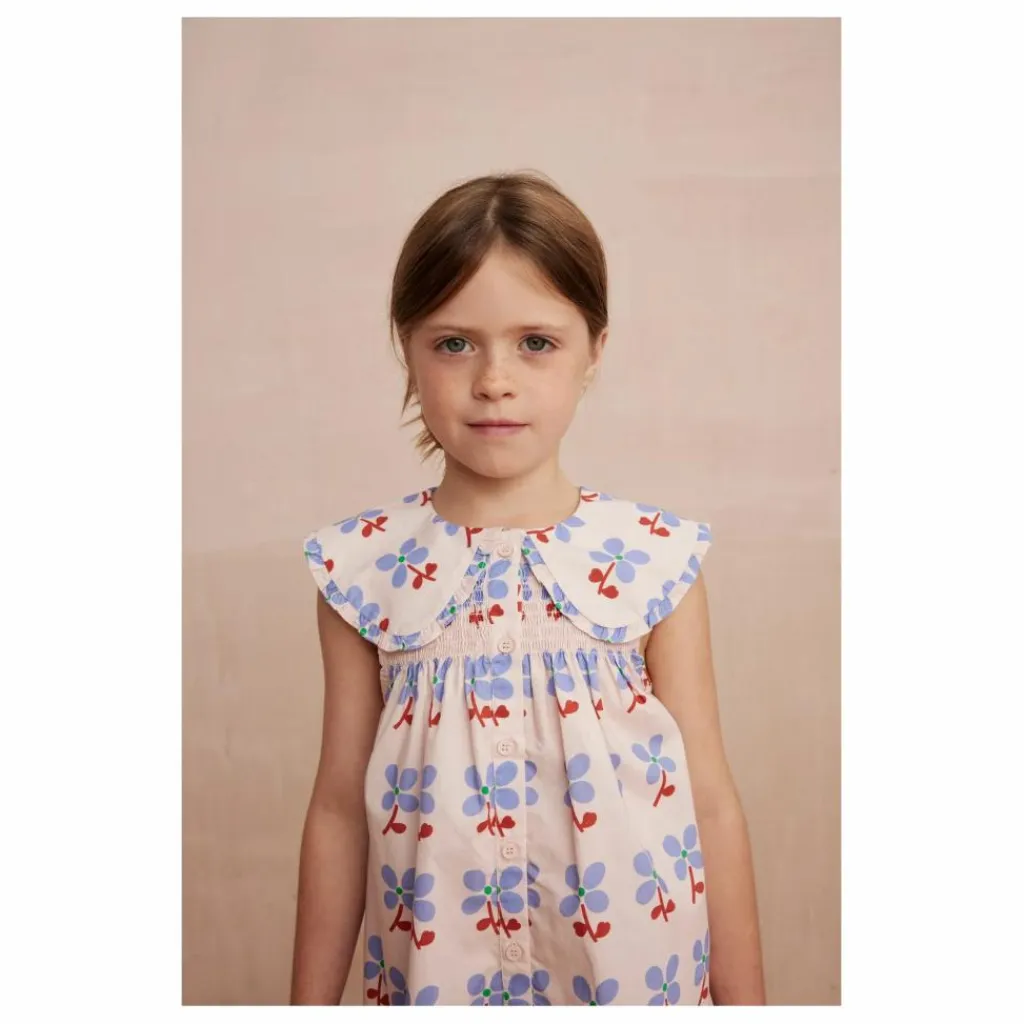 - Longue blouse sans manches en popeline imprimée all over avec un large col bordé d’un petit volant. Smocks sur le haut du corps pour un effet suspendu et boutonné sur le devant.