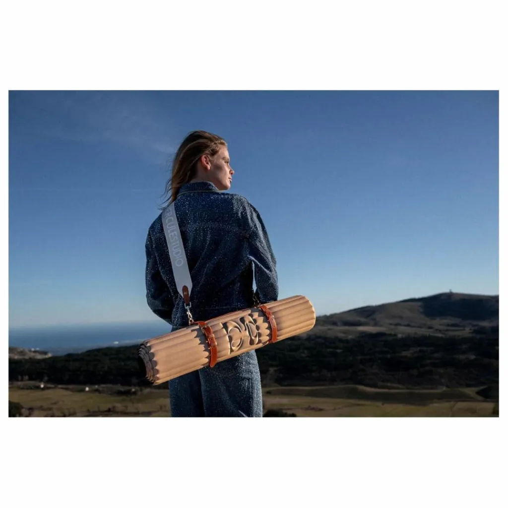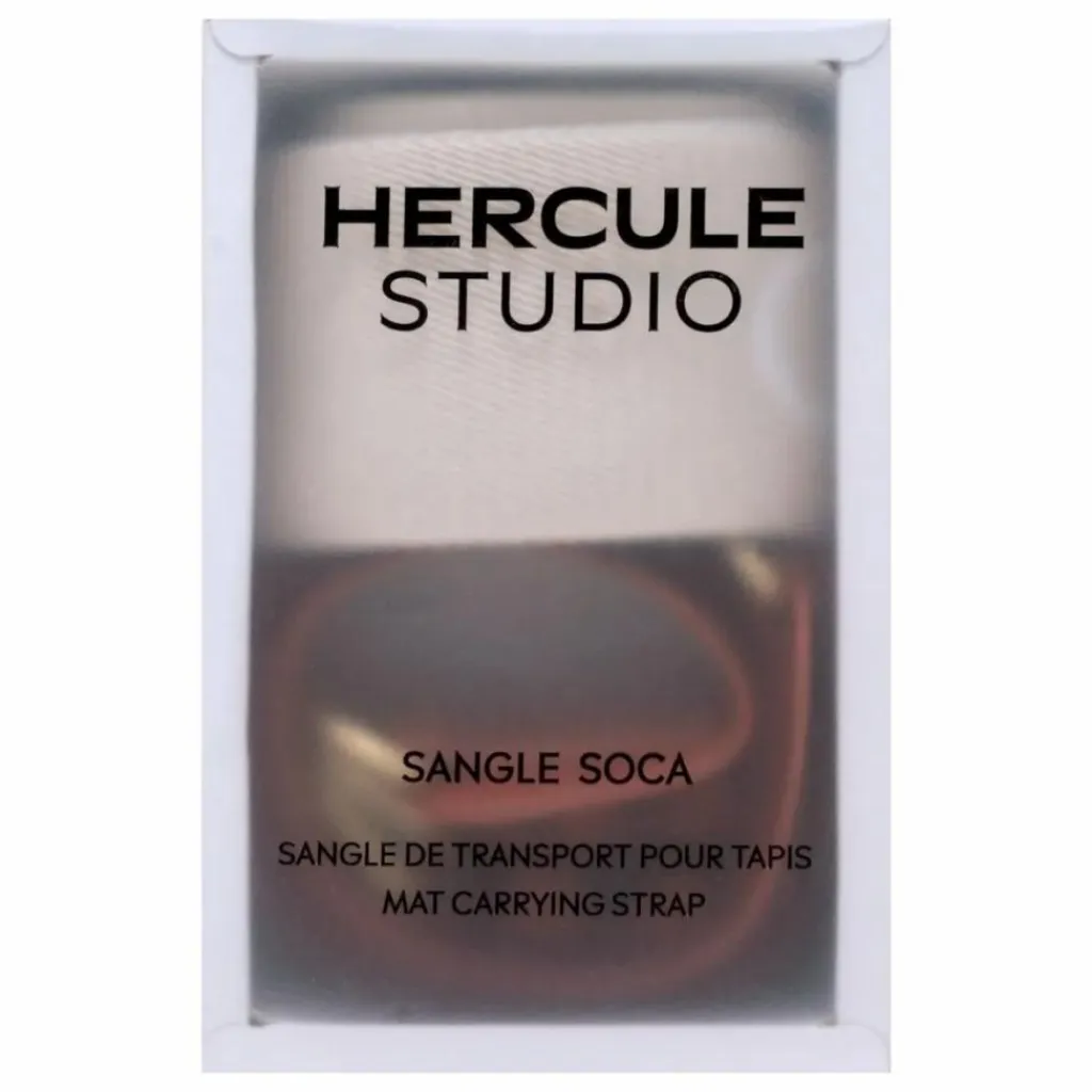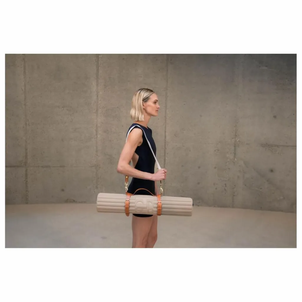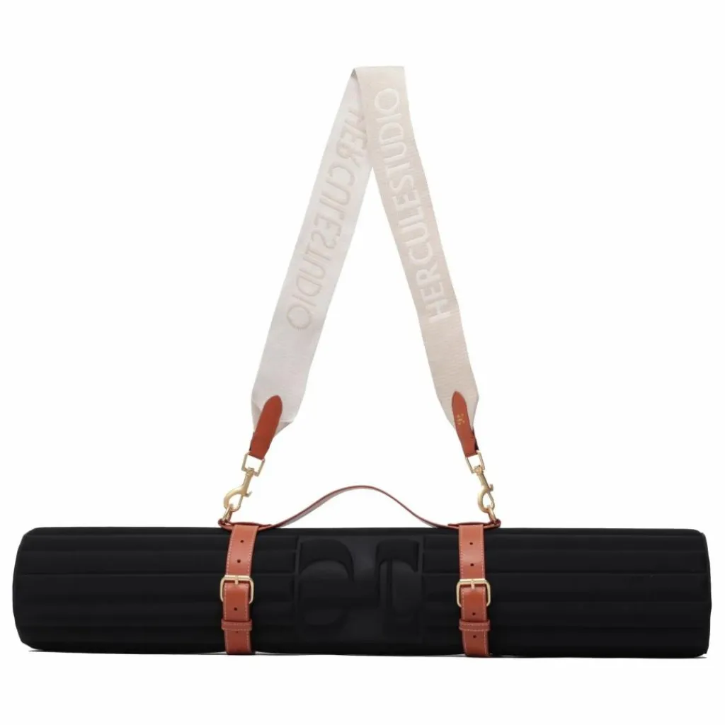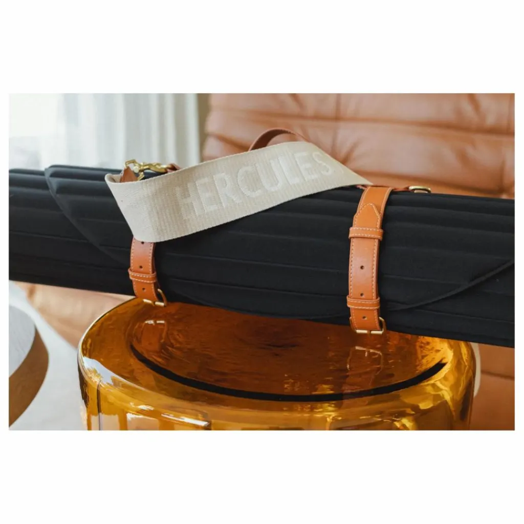 - Cette sangle de transport pour tapis Hercule Studio présente un harnais en cuir végétal et une sangle de transport amovible en coton tissé siglé.