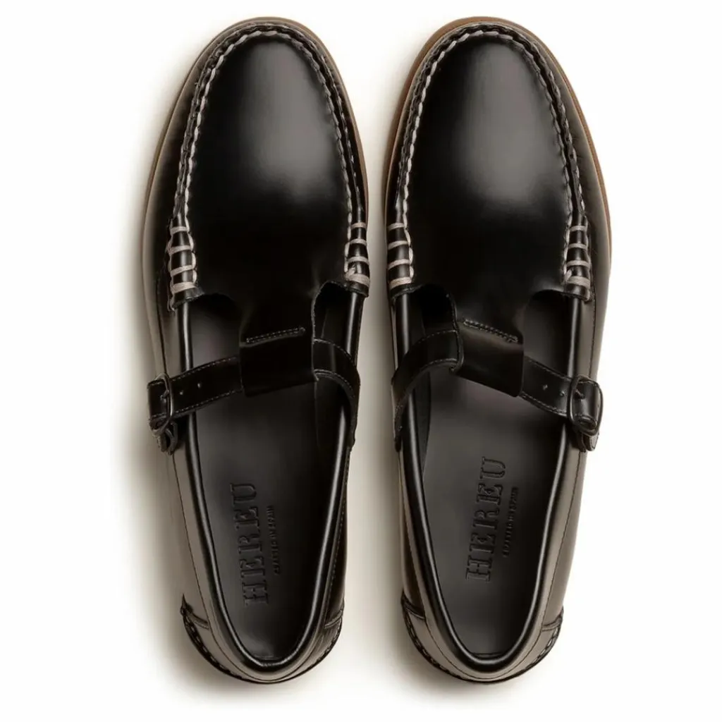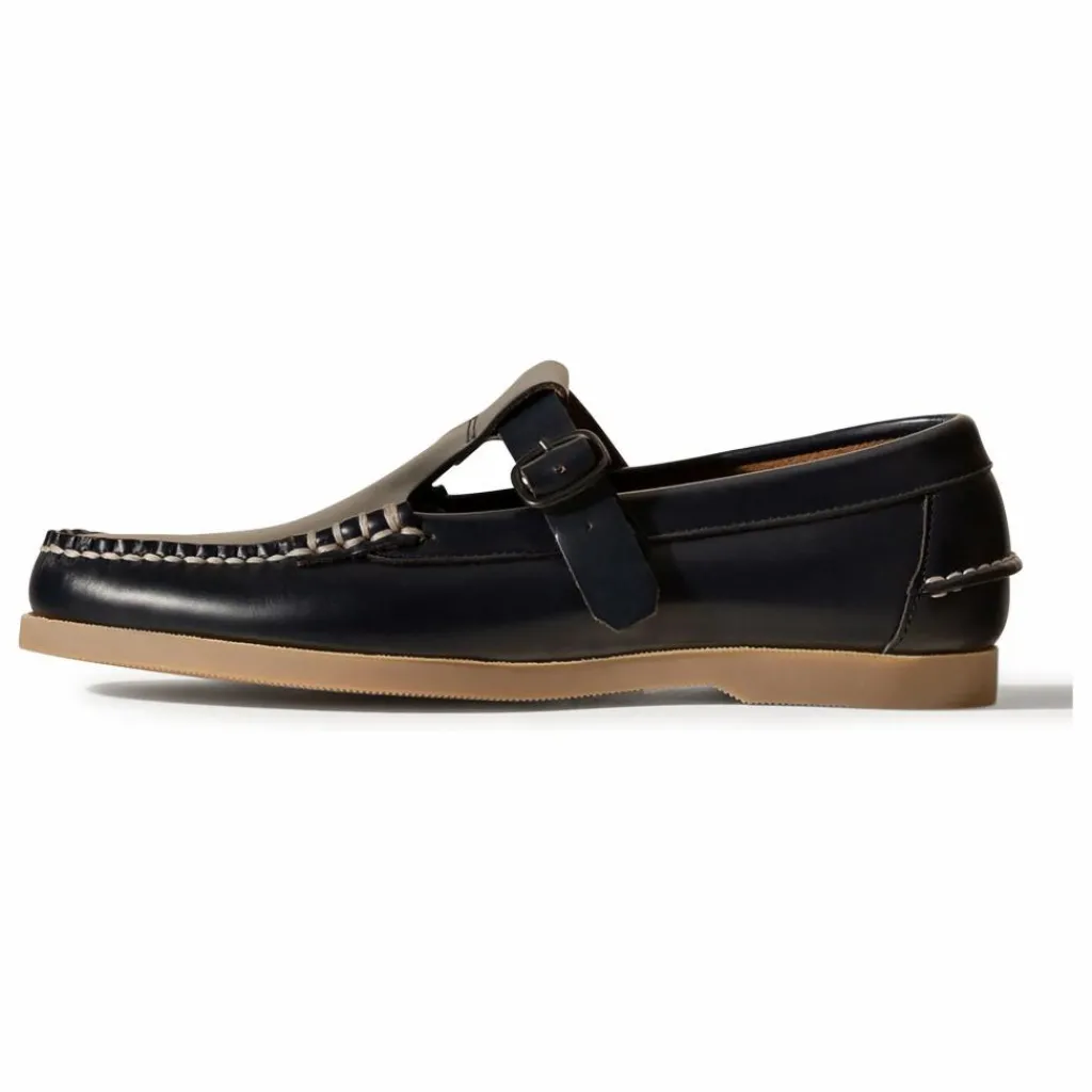 - Mocassins à barre en T avec semelle en caoutchouc nautique