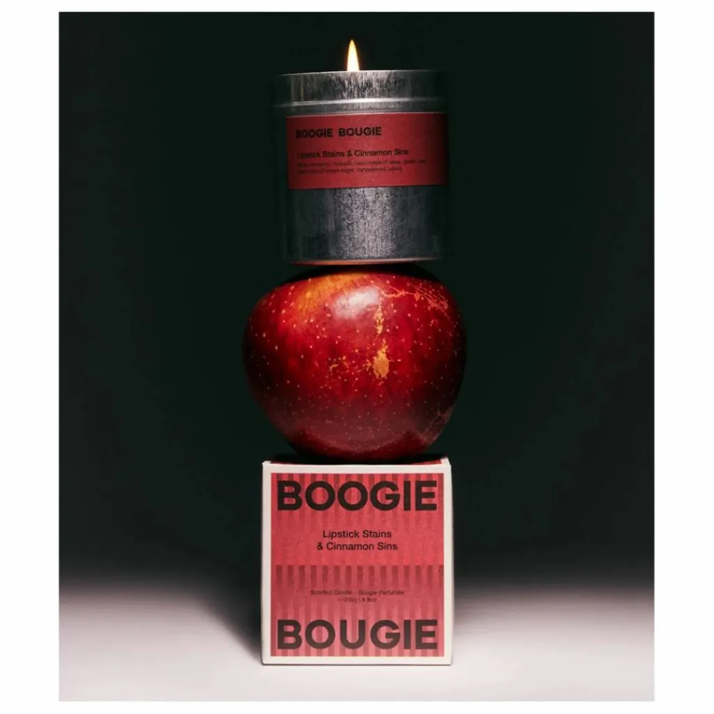 La bougie est parfumée aux notes de pomme, cannelle, rhubarbe, clou de girofle, pêche, rose, cassonade, bois de santal et vanille, idéale pour la saison hivernale.