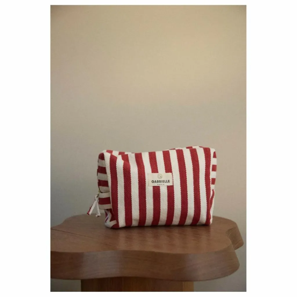- La trousse de toilette à rayures est un accessoire pratique et élégant pour vos voyages ou pour organiser vos produits de beauté au quotidien. Avec ses rayures rouges vives, elle ajoute une touche de dynamisme à vos essentiels. Confectionnée en 100 % coton, elle est à la fois légère et résistante, et sa doublure crème enduite imperméable protège vos affaires des éclaboussures, facilitant ainsi son entretien. Ses dimensions de 15 x 22 x 10 cm offrent un espace optimal pour ranger vos produits tout en restant compacte. À l’intérieur, deux poches permettent une organisation soignée, tandis que l’anse sur le côté assure une prise en main confortable. Sa fermeture zippée garantit que vos affaires restent en sécurité. Idéale pour les déplacements ou le rangement quotidien, cette trousse combine fonctionnalité et style avec élégance.