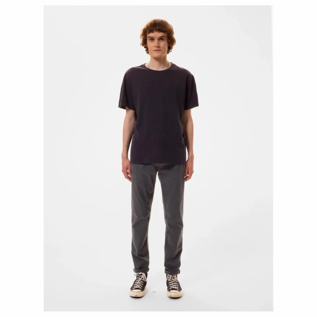 - T-shirt solide à col ras du cou et coupe régulière en jersey de coton biologique souple. Fini avec une côte 1×1 au niveau du cou et des points de dents de souris au niveau des manches et de l’ourlet du bas.