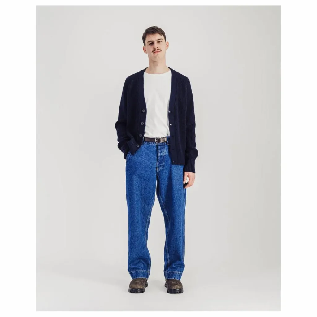 - Gilet décontracté en maille anglaise épaisse avec ouverture à cinq boutons et hauts bords-côtes aux poignets et bas.