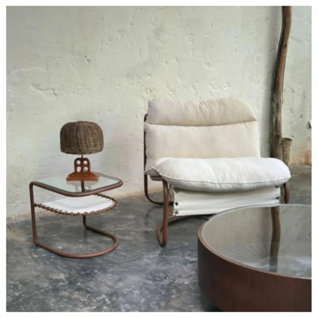 - Le Fauteuil Campo Indoor d’Honoré Déco allie simplicité et confort pour un design minimaliste. Avec sa structure tout en courbe, cette version intérieure possède un double revêtement : une toile tendue maintenue par des œillets et cordage, ainsi qu’un coussin en coton capitonné pour un confort supplémentaire.