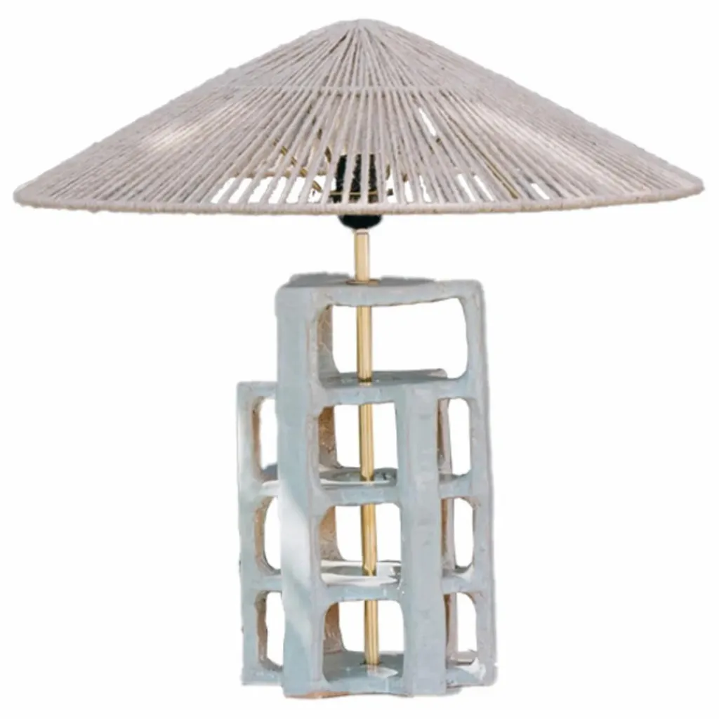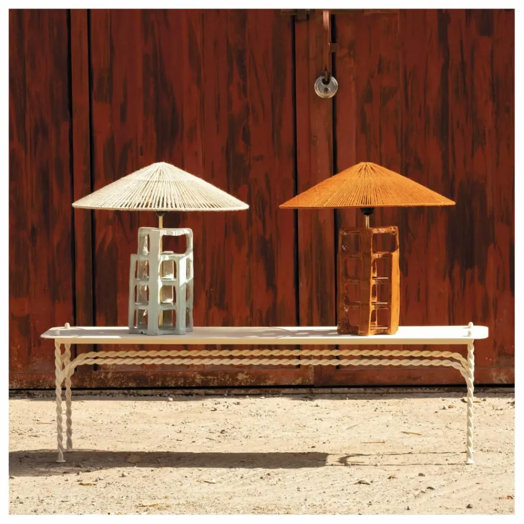 - Lampe à poser Piz céramique : son pied de lampe unique est composé d’ossatures en céramique qui s’imbriquent avec ingéniosité, rappelant un casse-tête chinois. Sa structure audacieuse est surmontée d’un abat-jour en forme de « chapeau chinois » tissé en fibre naturelle