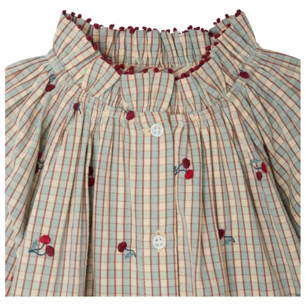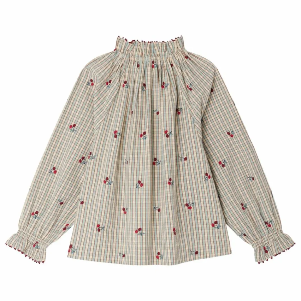 - La blouse Jordana pour fille est confectionnée en coton issu de l’agriculture biologique. Son imprimé à carreaux original se rehausse de broderies cerises sophistiquées, assorties au bord brodé du col et des poignets. Ces derniers se composent d’un grand volant. L’ouverture se fait à l’avant par des boutons nacrés.En coton biologiqueCol montant volanté brodéFronces sous l’encolure devant et au dosManches longuesPoignets élastiqués volantés brodésOuverture boutonnée devant