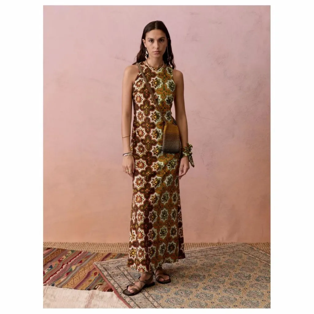 - Robe longue sans manches avec découpe flatteuse dans le dos Ligne A évasée de la hanche à l’ourlet Fermeture zippée invisible sur le côté