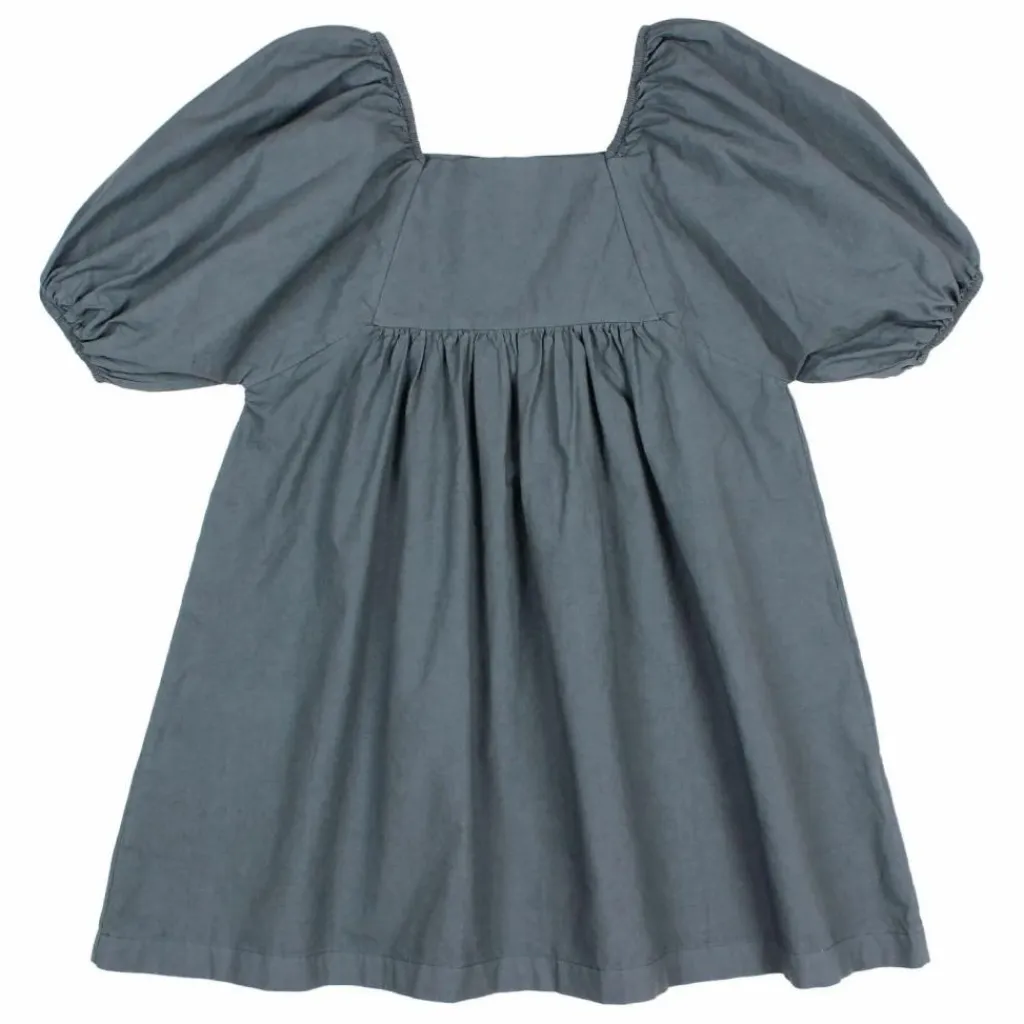 - Robe en popeline. Encolure droite. Fermeture en goutte d’eau avec bouton au dos. Épaules élastiquées. Manches bouffantes en ranglan. Bas à volants.