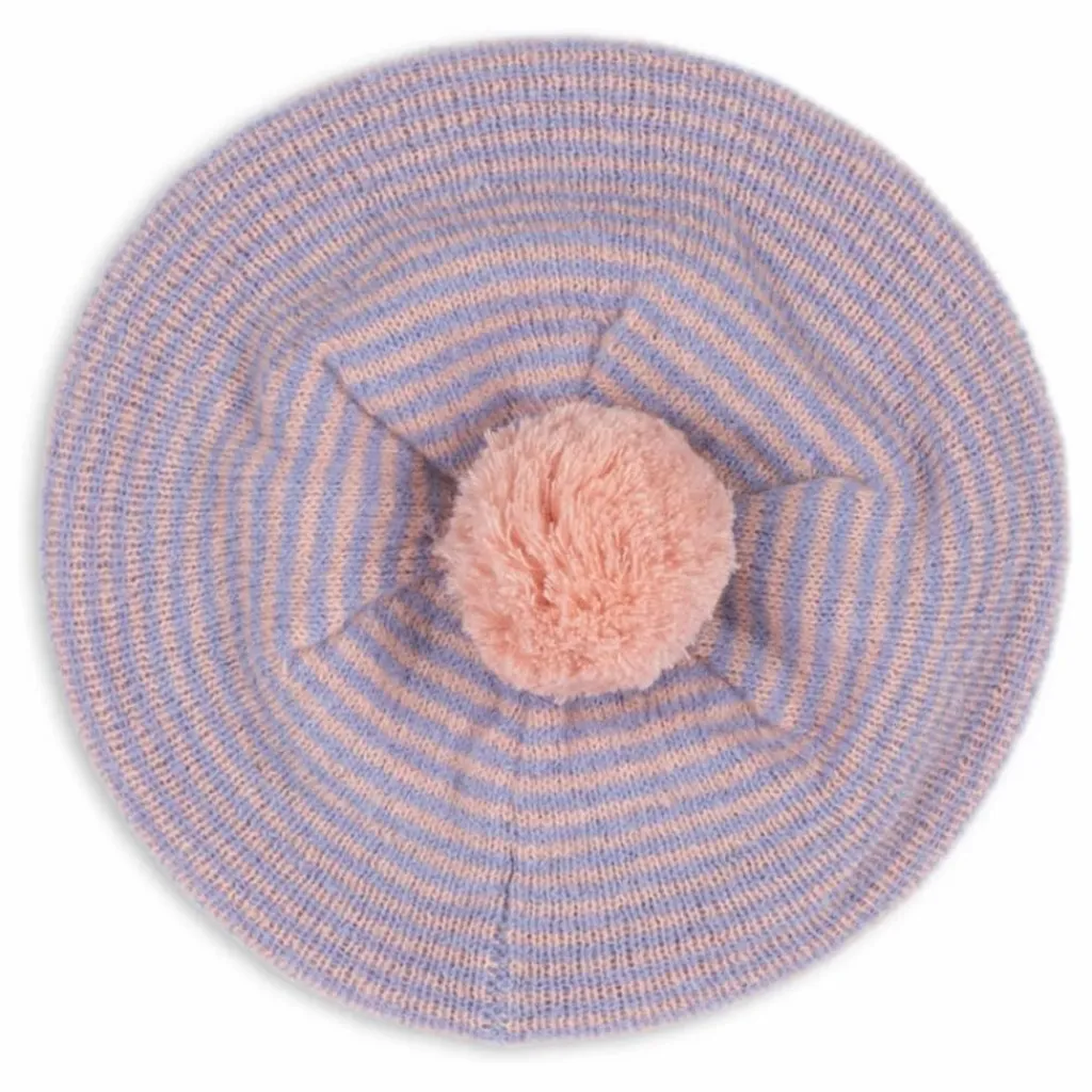 - Béret en tricot doux dans un mélange de laine chaude avec un pompon duveteux sur le dessus et un bord côtelé pour un ajustement confortable.