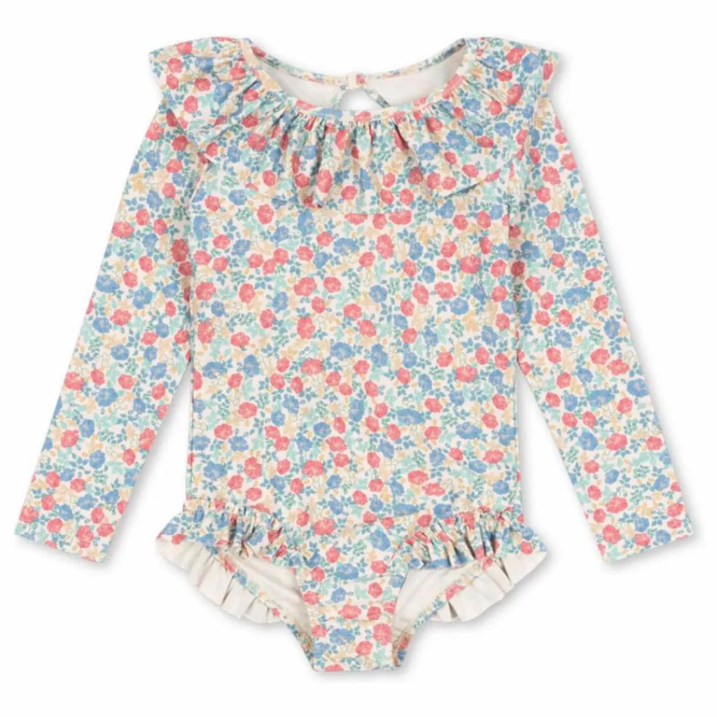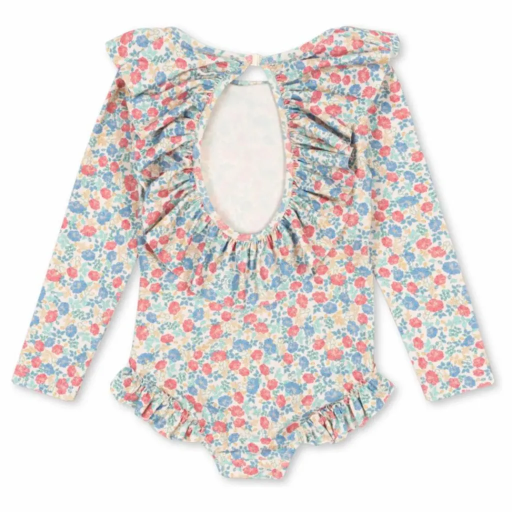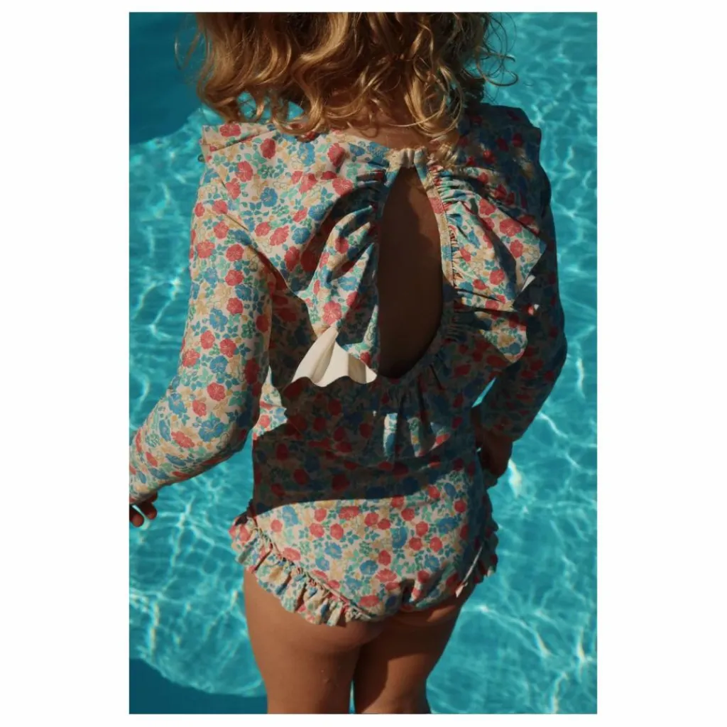 - Maillot de bain à manches longues conçu avec des détails à volants. Protège contre les rayons UV du soleil grâce à l’indice de protection ultraviolet le plus élevé, UPF 50+. Boutons-pression à l’ouverture des jambes, tailles 6M -18M. Matières : 80% polyester recyclé, 20% élasthanne. Ce produit contient 80% de polyester certifié GRS, certifié par CU 1094701. Ce produit est certifié OEKO-TEX® STANDARD 100, classe 1 par DTI Tekstil, DTI 2276-361.