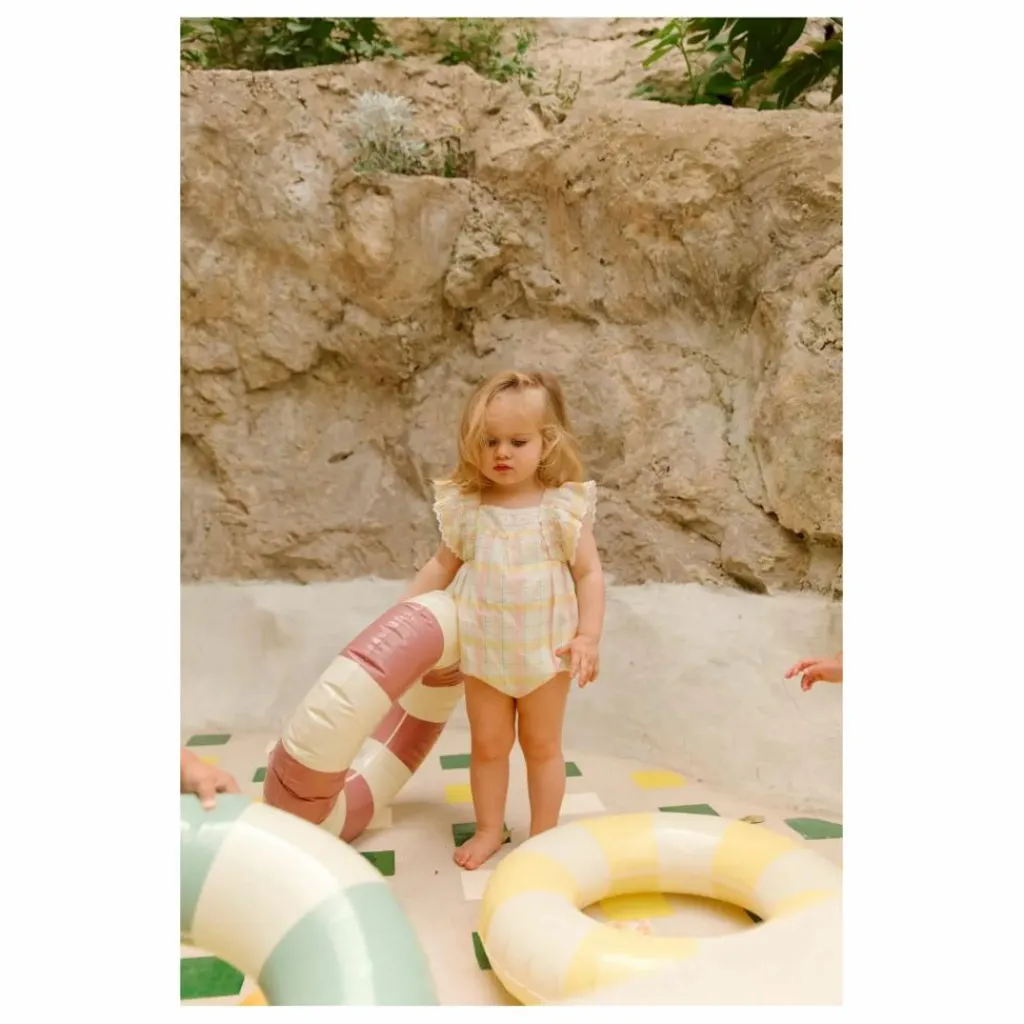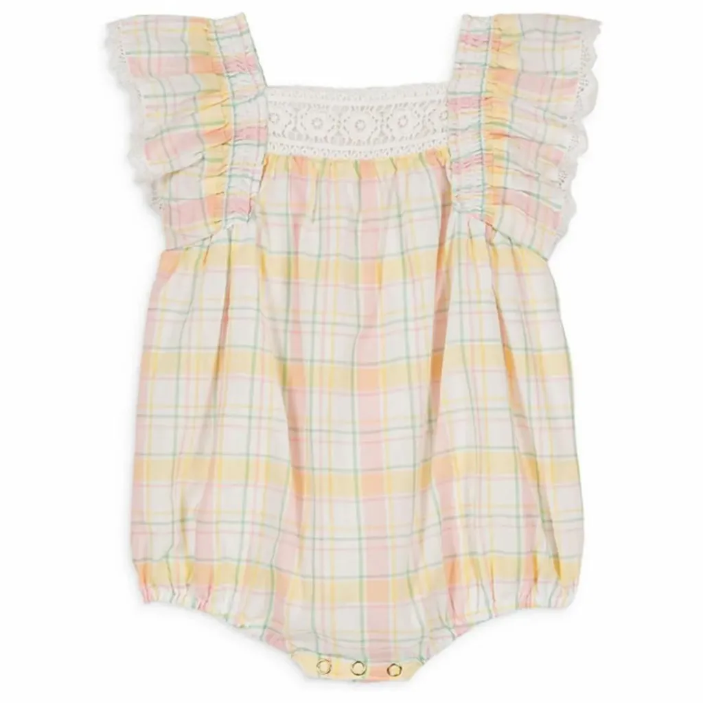 Barboteuse à carreaux en tissé teint.