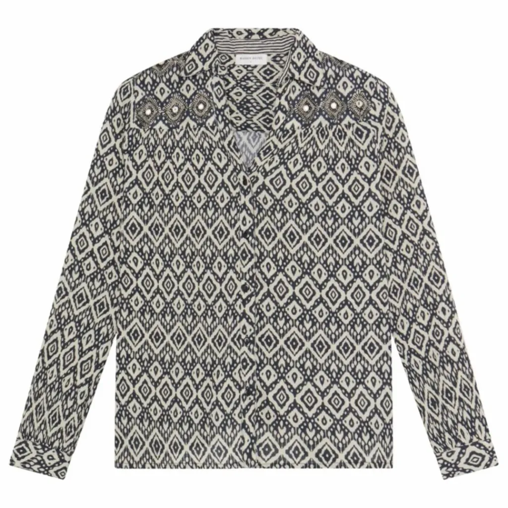 - Coupée en crêpe de coton aérée, la Blouse d’Amrit est légère, doucement froissée et porte une facilité qui résiste au vernis. Son ombre à glace à la vanille rappelle les murs de craie fanés par les étés passés, chauds et vécus plutôt que vifs.