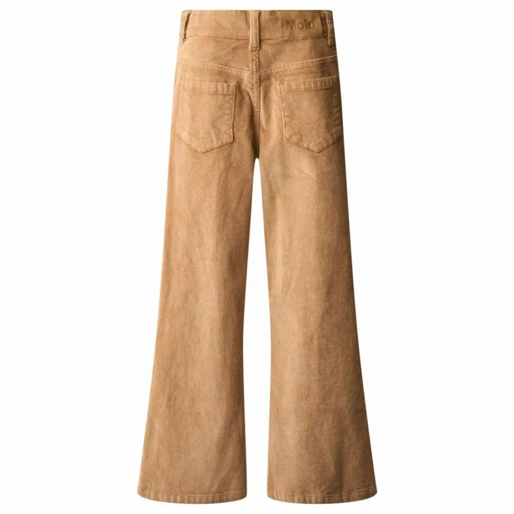 - Ce pantalon marron clair de Molo est confectionné en velours de coton doux et présente une silhouette en forme de trompette. Le pantalon est doté de poches avant et arrière ainsi que d’une fermeture à bouton et à glissière à la taille. Un élastique interne réglable assure un bon ajustement.