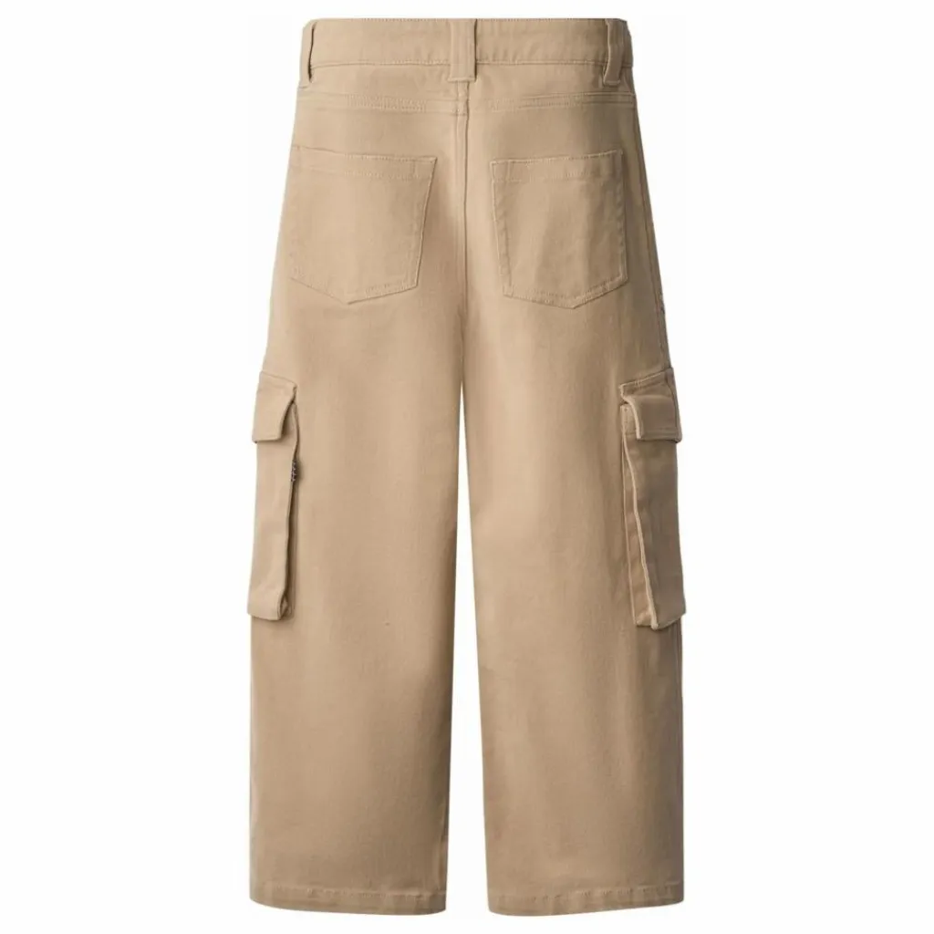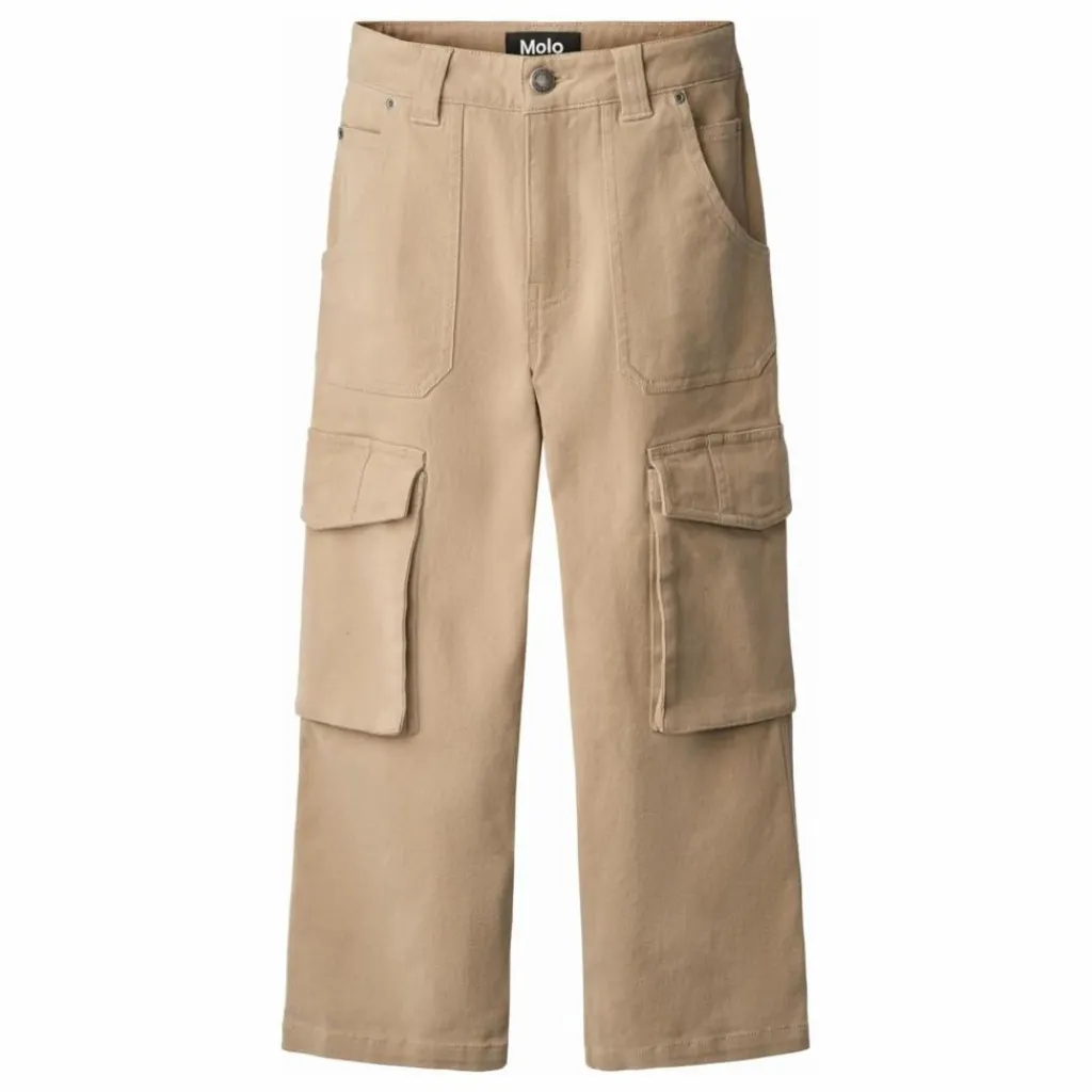 - Ce pantalon cargo beige de Molo est fabriqué en sergé de coton doux et présente une coupe décontractée avec des jambes larges. Le pantalon est doté de passants de ceinture et de huit poches pratiques, dont deux poches latérales spacieuses sur les jambes pour plus de fonctionnalité. La taille peut être ajustée à l’aide d’un élastique interne pour un ajustement optimal à tous les enfants. Les tailles 92-134 sont dotées d’un bouton pression, tandis que les tailles 140-176 sont dotées d’un bouton de jean classique.