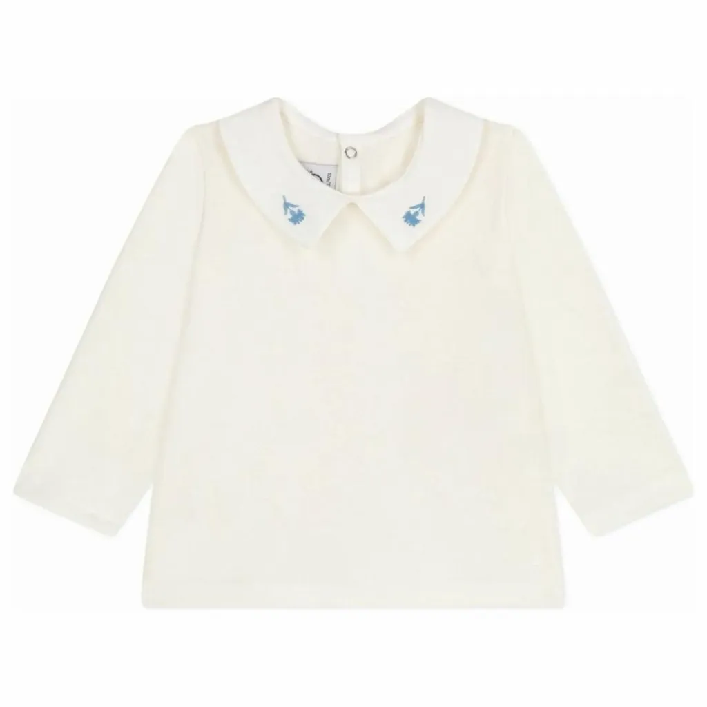 - Blouse en coton à manches longues avec col brodé pour bébés