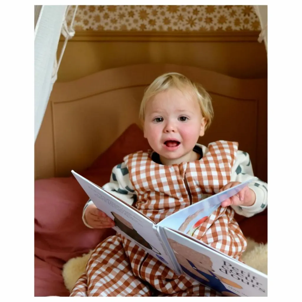 Conçue pour s’adapter à chaque bébé : utilisable recto-verso, avec la fermeture que l’on peut placer dans le dos pour éviter qu’il ne se découvre pendant son sommeil.