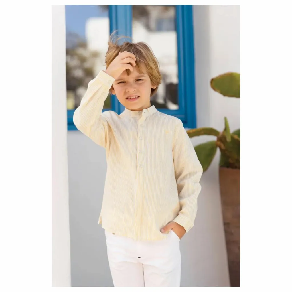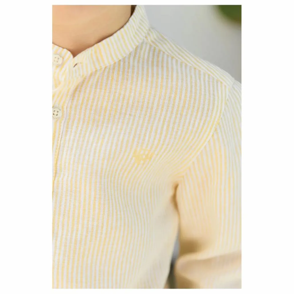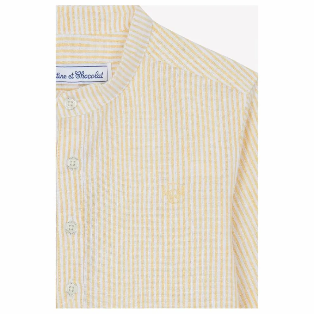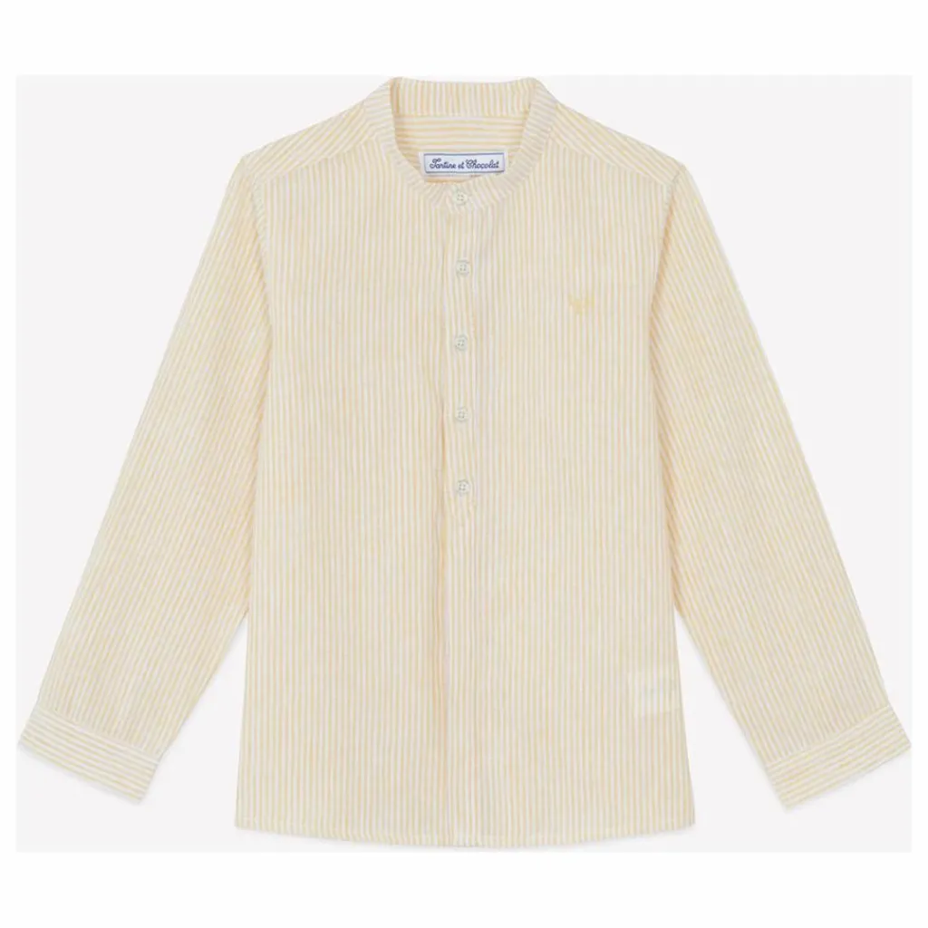 - Cette chemise en lin et coton à rayures, avec son col mao, est idéale pour une escapade au bord de mer. Son détail signature TC apporte une touche d’élégance subtile, idéale pour les petits explorateurs. Associez-la à un pantalon léger pour un look décontracté et chic en vacances. Confortable et respirante, elle accompagne les mouvements des enfants avec aisance et style.