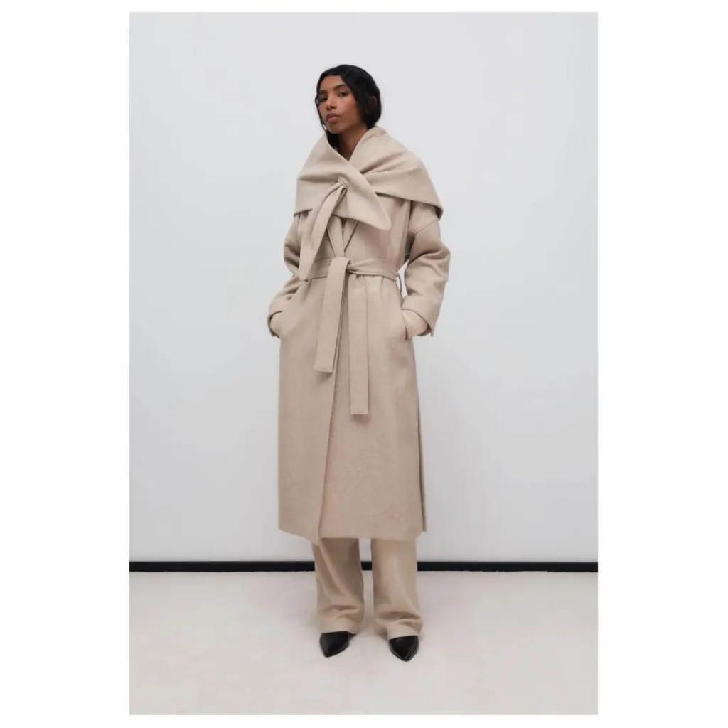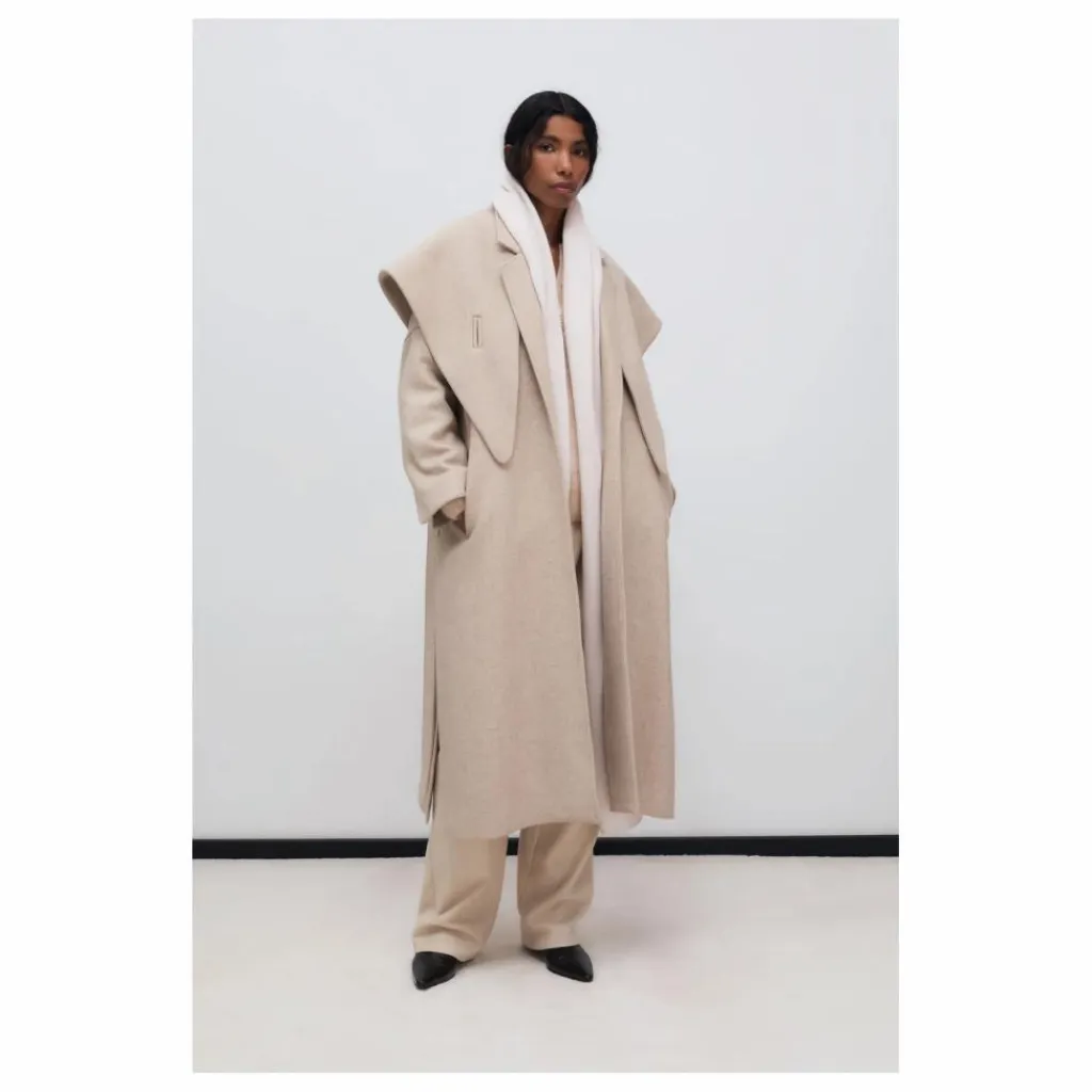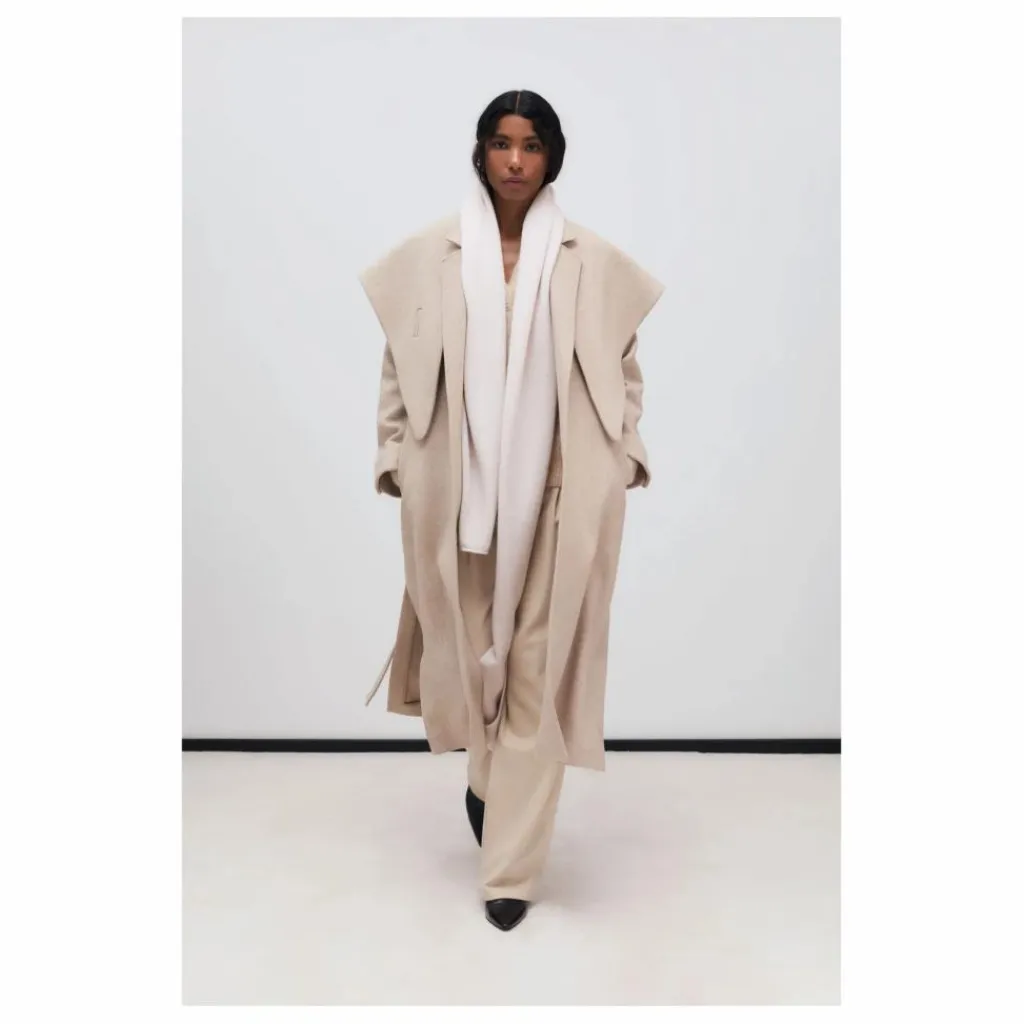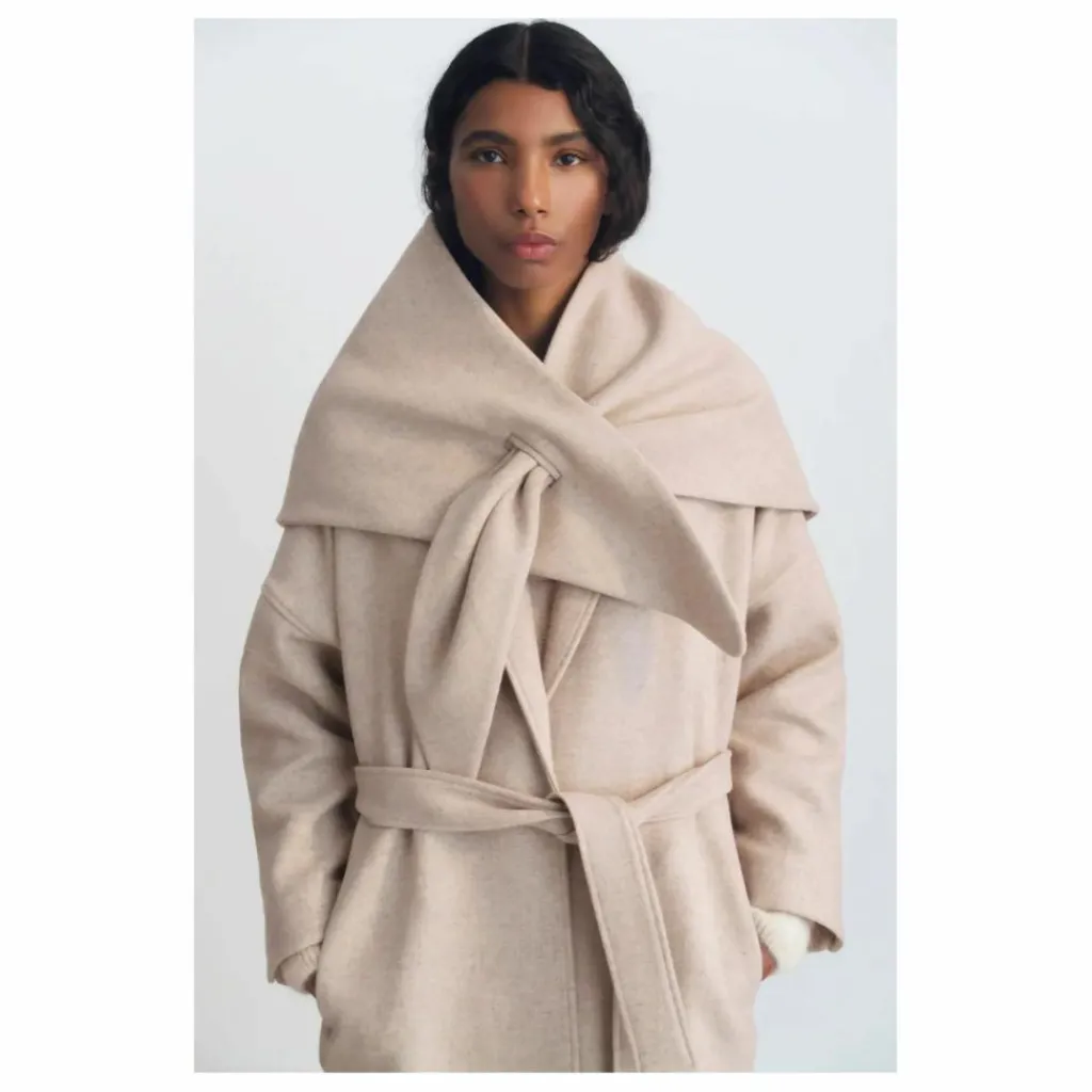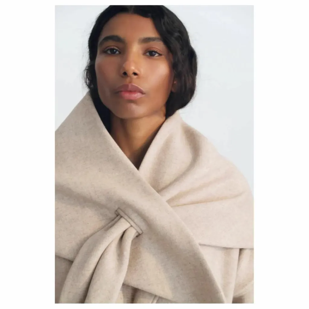 - Écharpe triangulaire en laine avec fente latérale. Parfaite pour être associée au manteau en laine assorti.