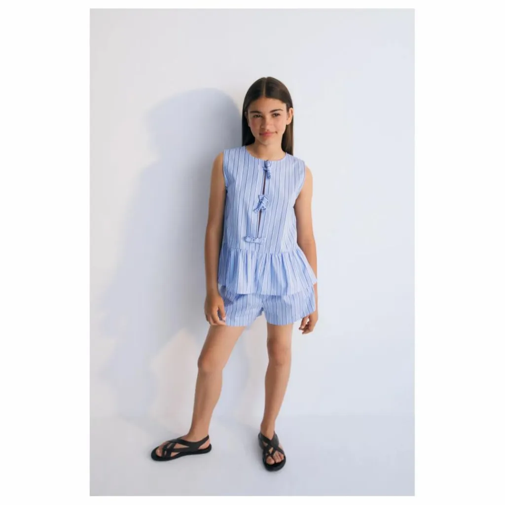 - Chemisier Hebe Teen en tissu rayé 100% coton avec détails de coupe et volants à l’ourlet, et nœuds centraux réglables.
