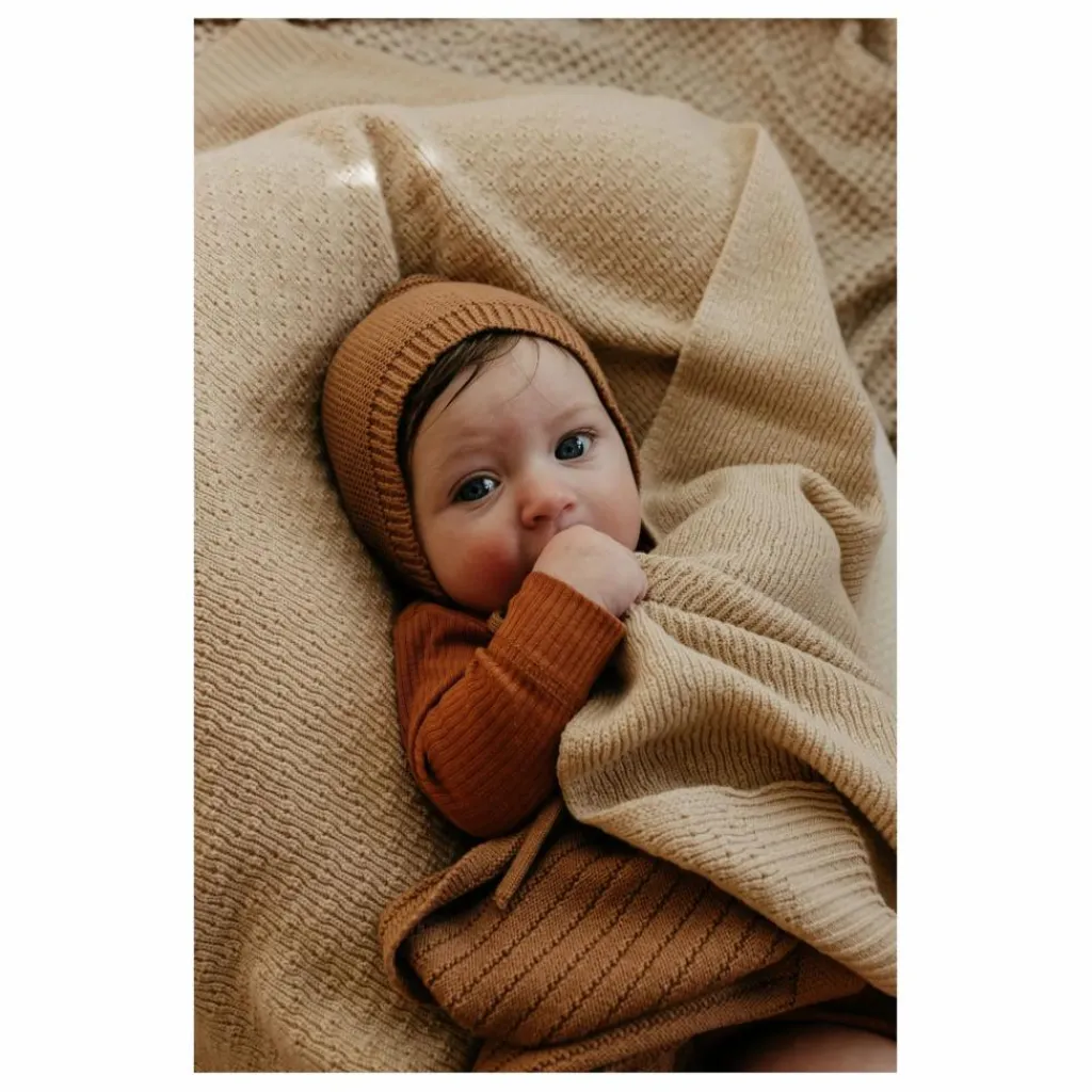 - Enveloppez votre tout-petit de chaleur avec notre couverture épaisse et douillette, tricotée selon la technique du point de côte. Parfaite pour les journées plus fraîches, cette couverture offre un environnement apaisant, idéal à la maison, dans le berceau ou la poussette. La laine mérinos garantit durabilité et douceur longue durée. Indispensable pour la sieste, le coucher ou les sorties, cette couverture garde votre bébé bien au chaud et confortable.