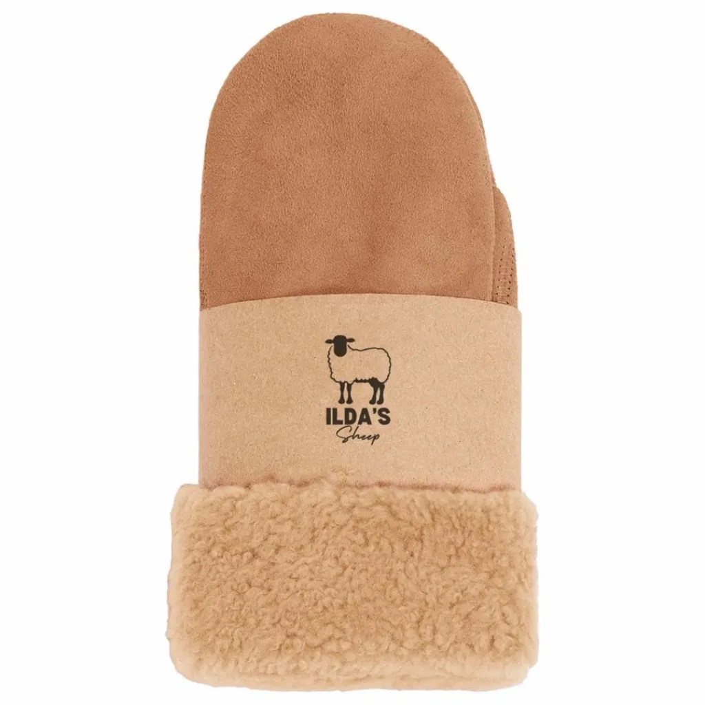 - moufles en peau lainée, poignet laine, ajustement par bouton pression en métal, couture et finition ton sur ton