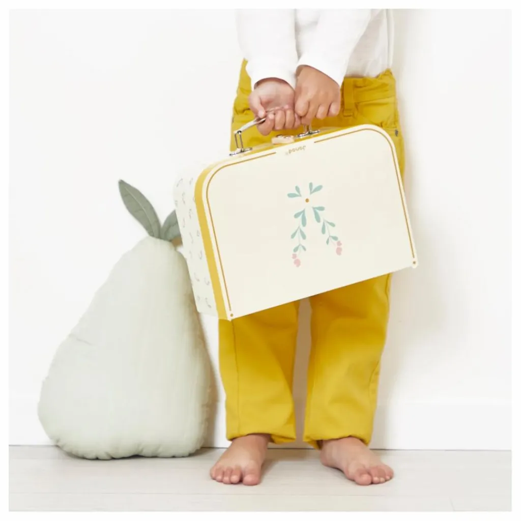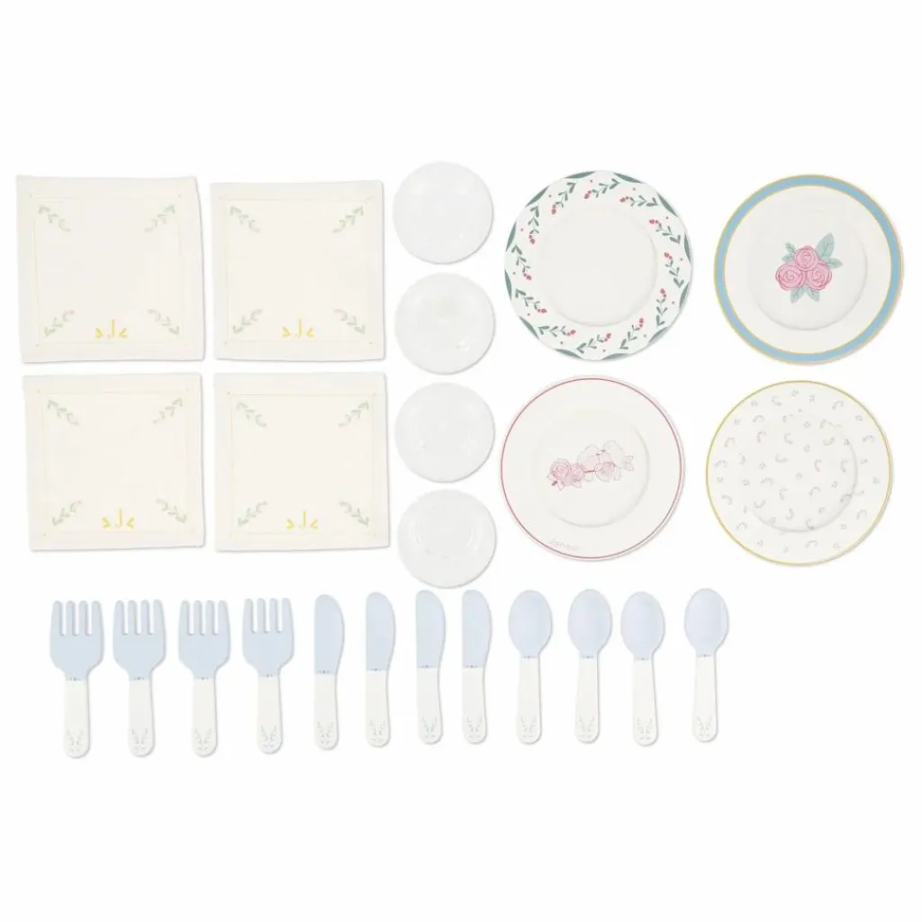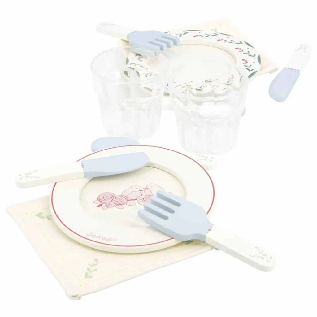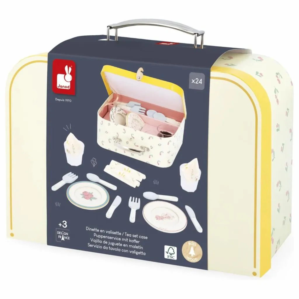 - Le dimanche c’est pique-nique ! C’est parti pour une journée ensoleillée au bord du lac avec ce joli set de dinette. La valisette est facile à emporter partout grâce à sa poignée en métal, et transporte avec elle tout le nécessaire pour un bon repas. 4 assiettes en bois au décor fleuri, 4 serviettes en tissu, 4 sets de cuillères, fourchettes et couteaux et enfin 4 verres au look retro. Ce set est parfait pour imiter les plus grands, et s’inventer pleins d’histoires ! Jouet d’imitation en bois FSC™ pour les enfants à partir de 2 ans.